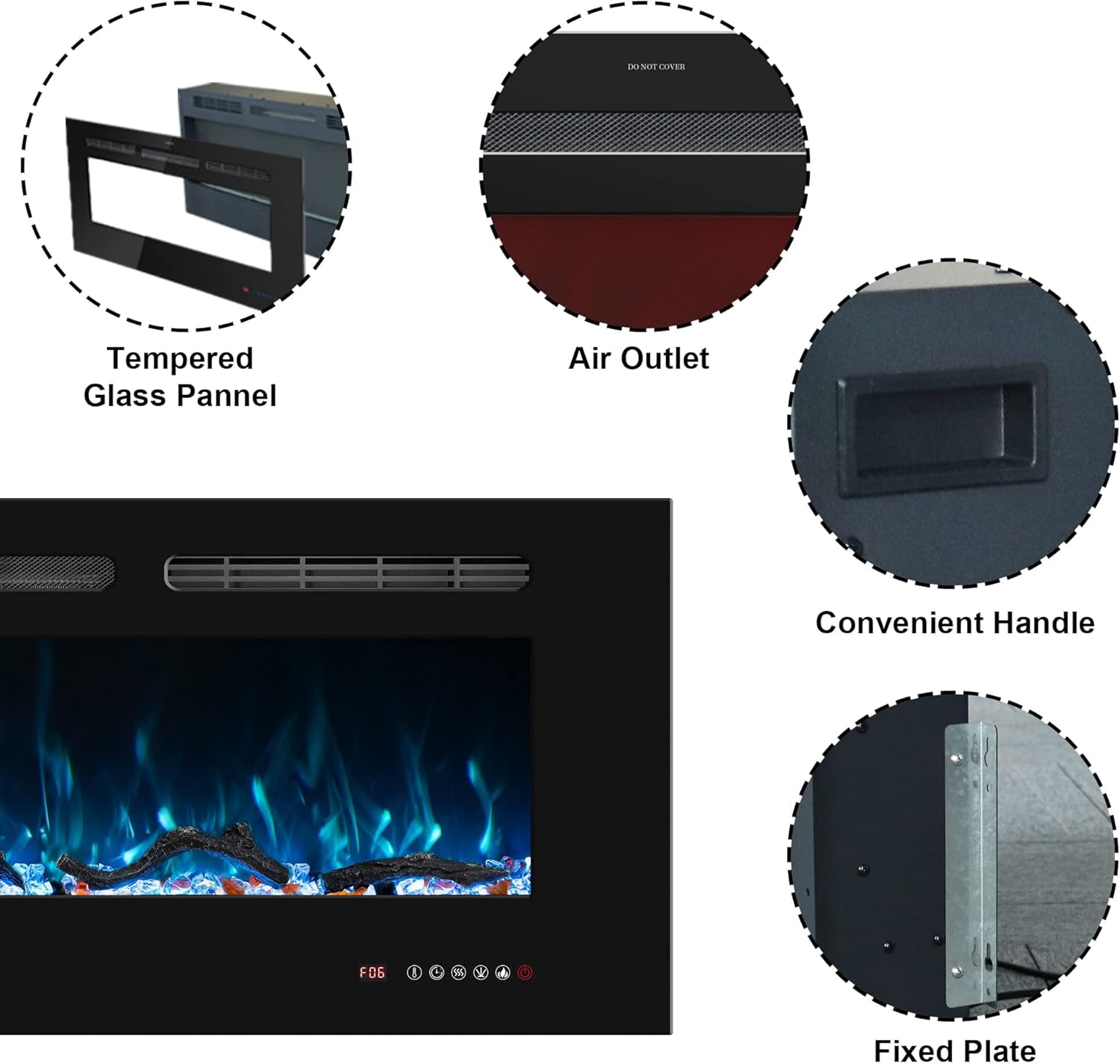 Advanced ExperienceConvenient to operate all functions at will by remote control and touch screen. With the Timer (1-9 hours) & Overheating Protection, the electric fireplace inserts can automatically turn off at the set time or when desired ambient temperature is reached. So No more worrying about forgetting to turn off the fireplace or having too much heat.