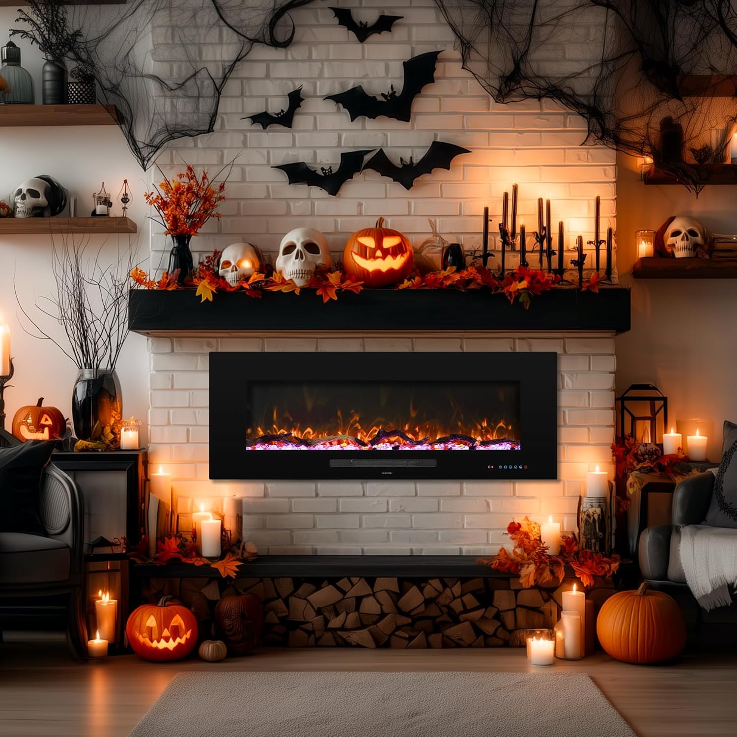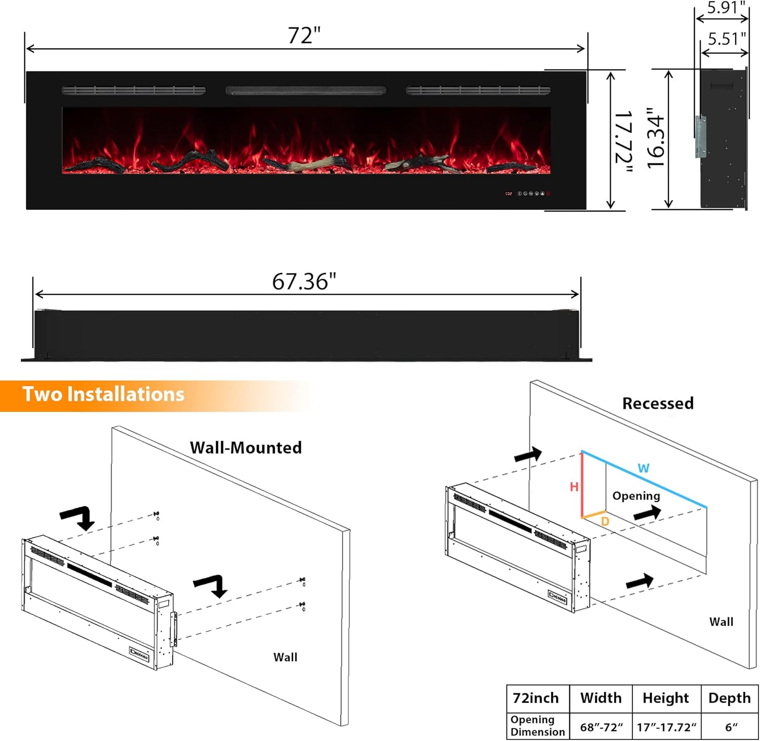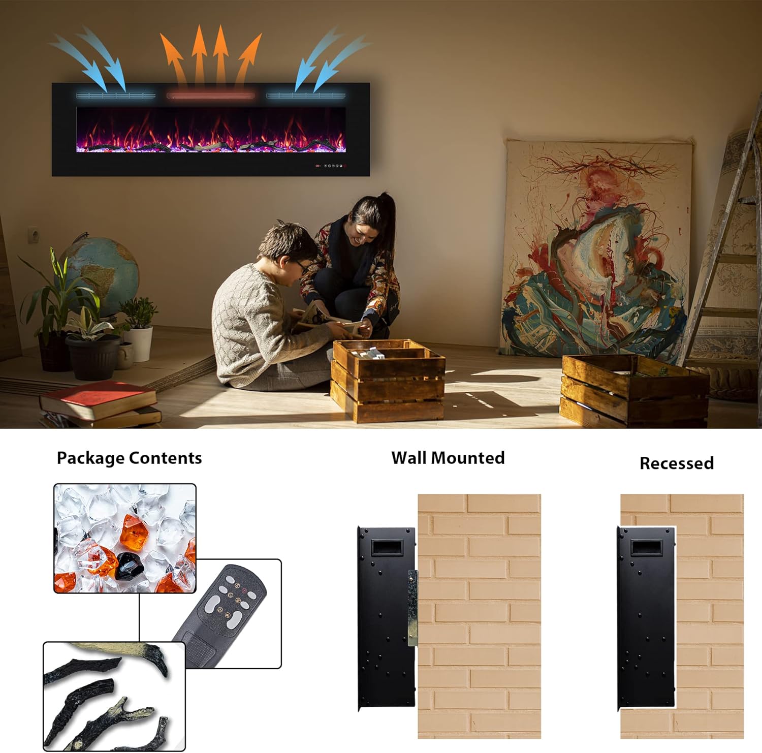 Modern Home DecorBlack thin frame, larger display area, tempered glass panel, rustproof iron material, which composes a solid body with modern style. When turning it on, it creates a lifelike firing effect with realistic logs &crystals, and has 13 flame colors and 13 fuel bed colors, bringing a super visual feast to your cozy home, fitting for living room, bedroom, dining room, etc.