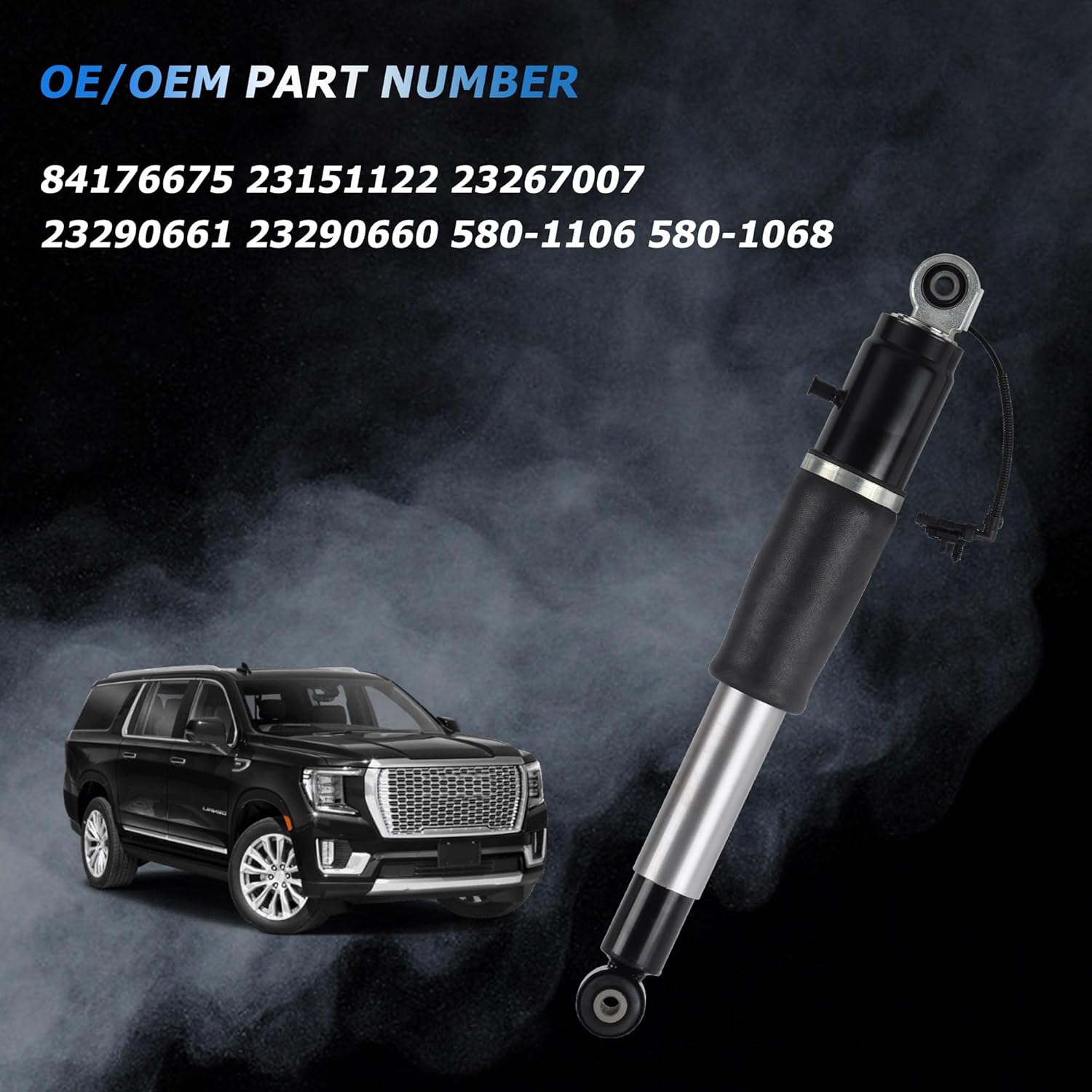 Compatible with: This Air Shock Compatible with 2015-2022 Tahoe 2015-2022 Yukon 2015-2022 Yukon XL 2015-2022 Escalade ES 2015-2022 Escalade 2015-2022 Suburban.