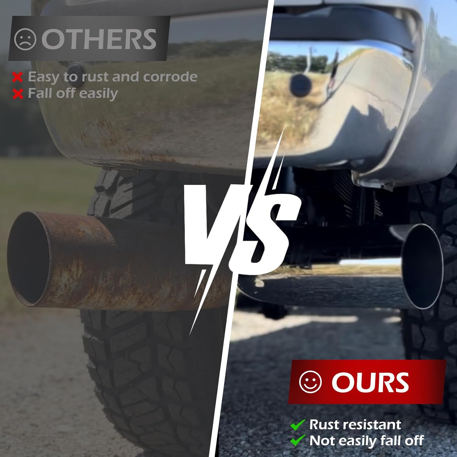 APPEARANCE: The pure and elegant silver exterior can perfectly decorate your vehicle. Replace your rusted tailpipes and look different.