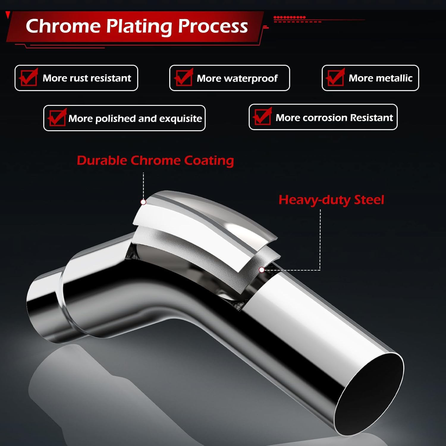 PREMIUM MATERIAL: Made of alloy steel construction precision polished. Resistant to high temperatures and corrosion perfectly withstands the high temperatures of exhaust.