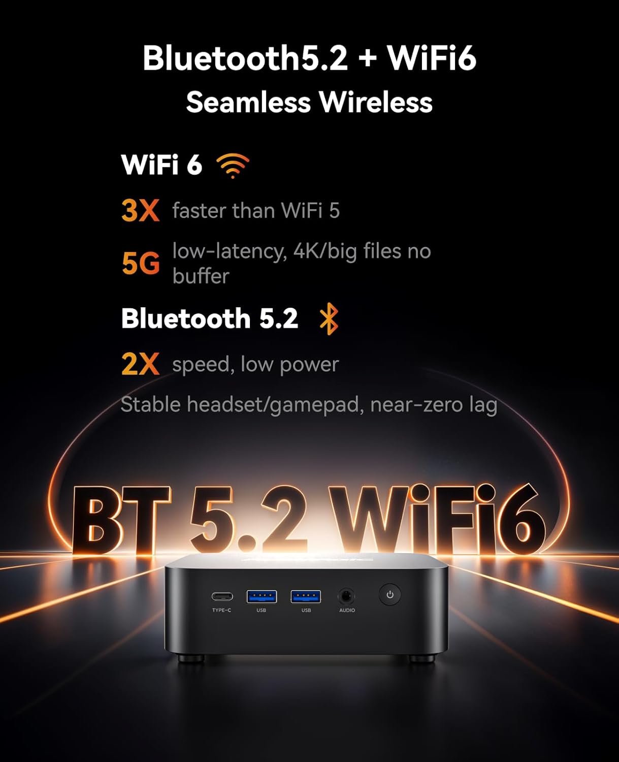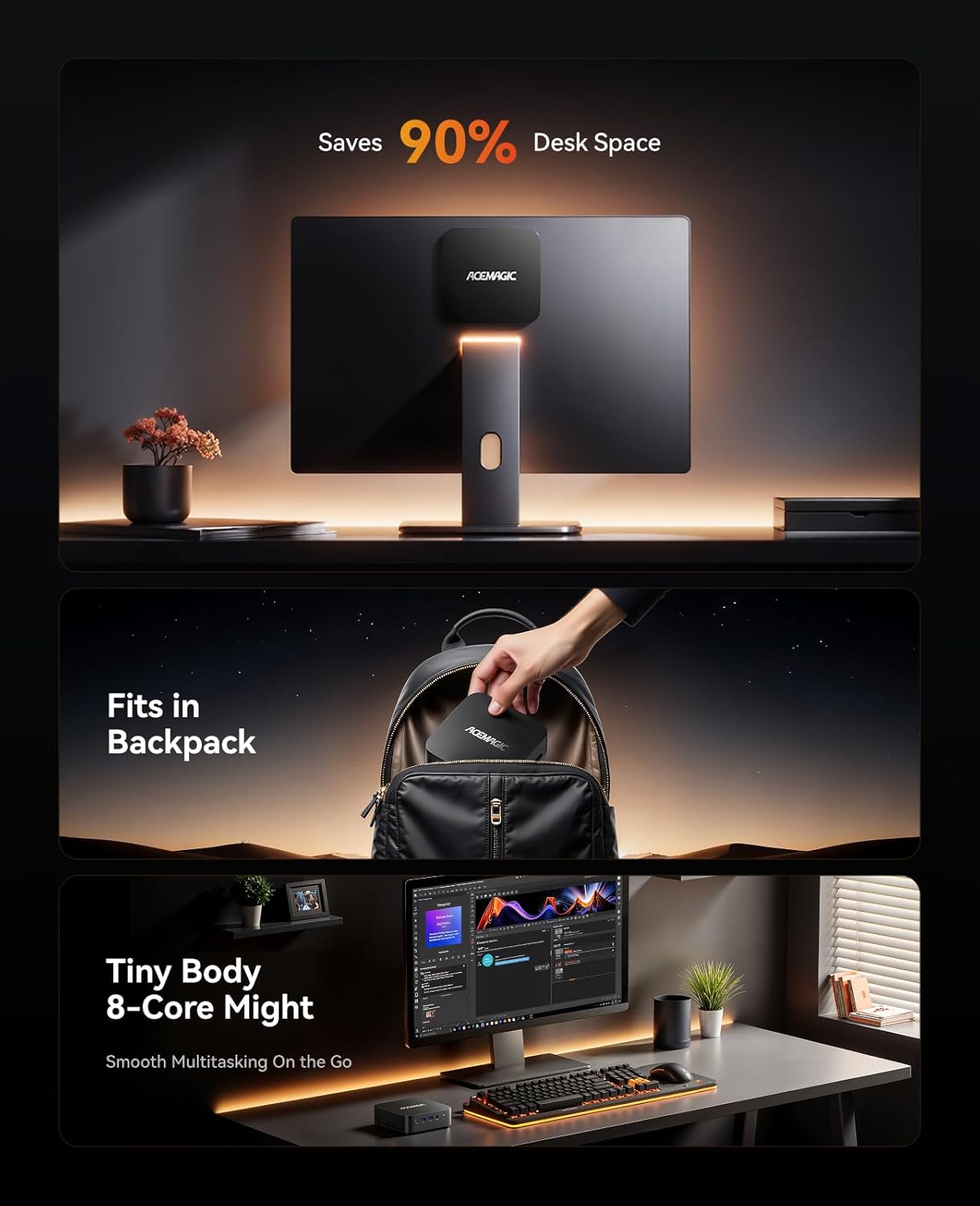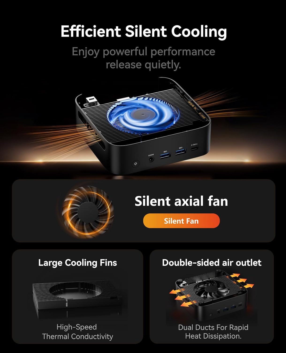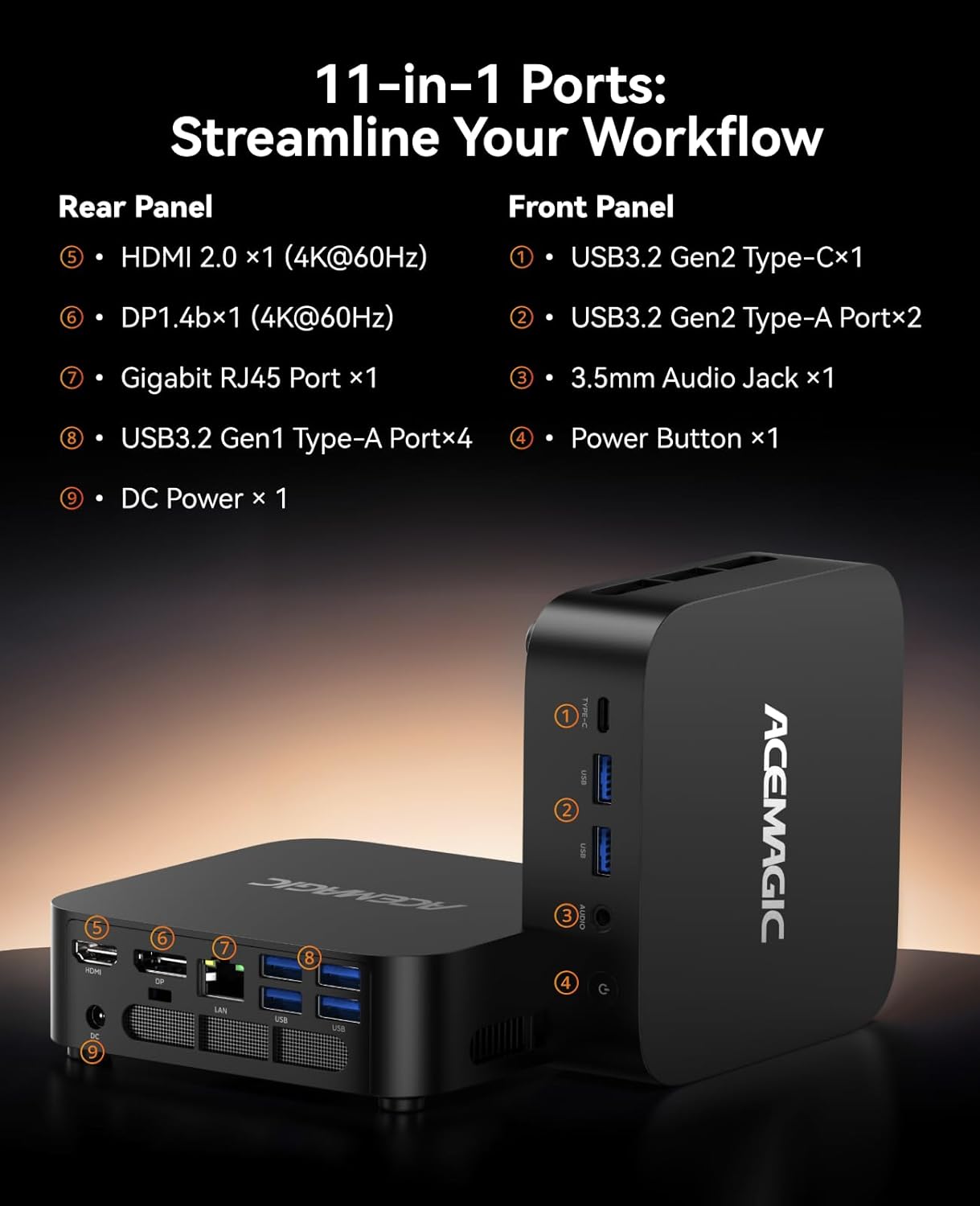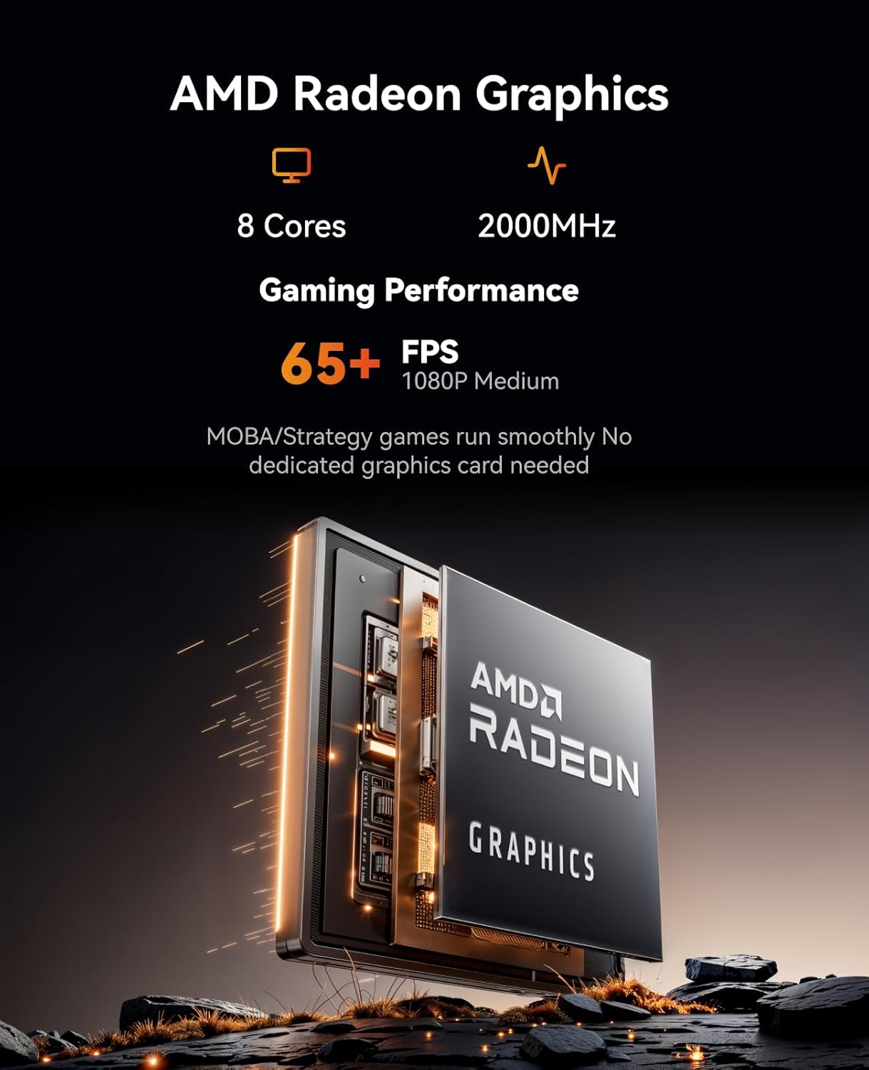 [4K TRIPLE DISPLAY OUTPUTS] Mini PC office supports triple display output with HDMI DisplayPort and Type-C ports. The GPU adopts Radeon Graphics (8 GPU cores) the clock speed is 2000MHz supports ultra-realistic 4K visual effects which can provide incredible clarity and maximum work efficiency
