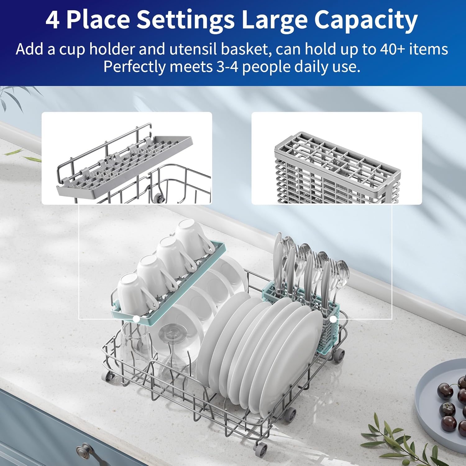 Efficient Cleaning - 14 washing nozzles evenly clean heavily soiled dishes combined with 360 spiral spray from upper and lower spray arms ensuring complete washing of all the dishes from all angles.Also high water temperature of up to 167F and high water pressure offer you the best cleaning towards the most stubborn stains. Ideal for cleaning baby bottles and children's tableware ensuring your children use the cleanest tableware.