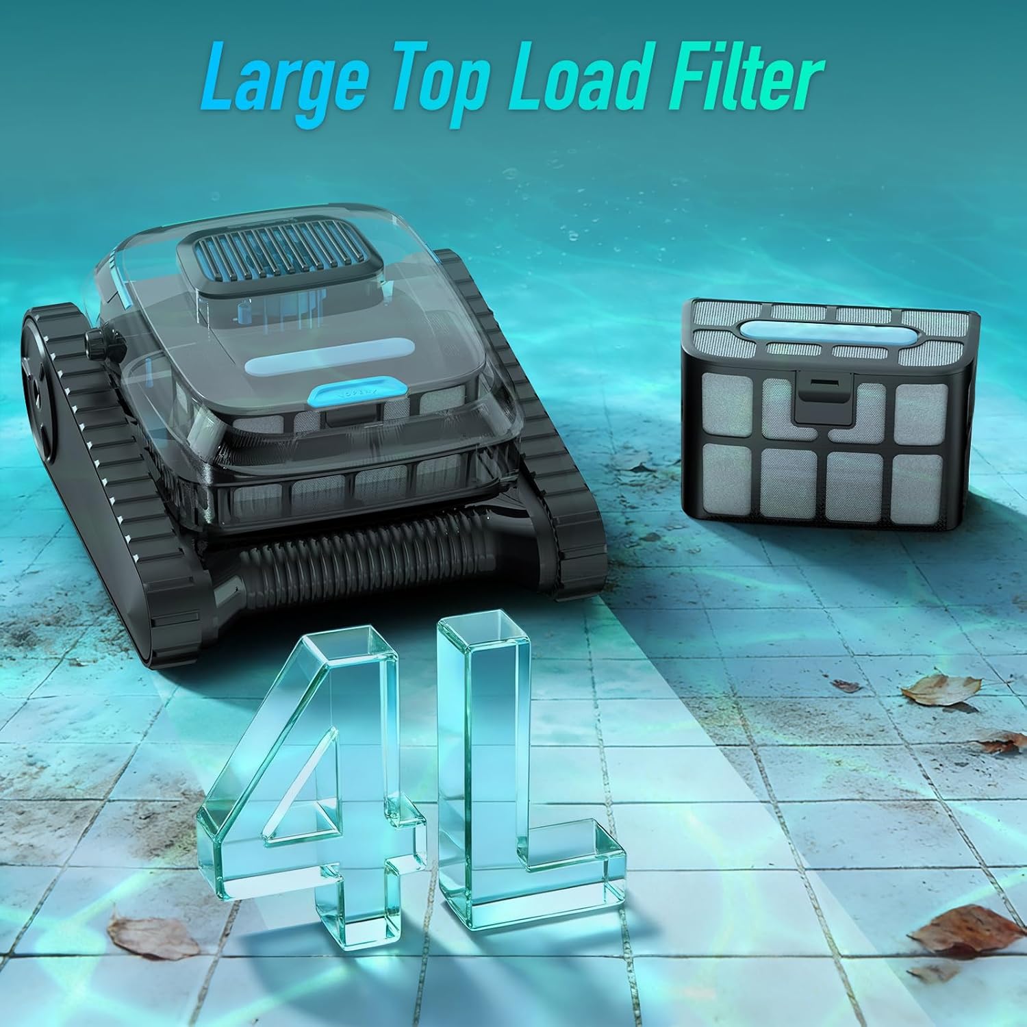 owerful 5000 GPH Performance for Deep Cleaning: With a strong 5000 GPH water flow this robotic pool cleaner effectively removes leaves sand dirt and fine debrisideal for everyday maintenance post-party cleanups or after storms.
