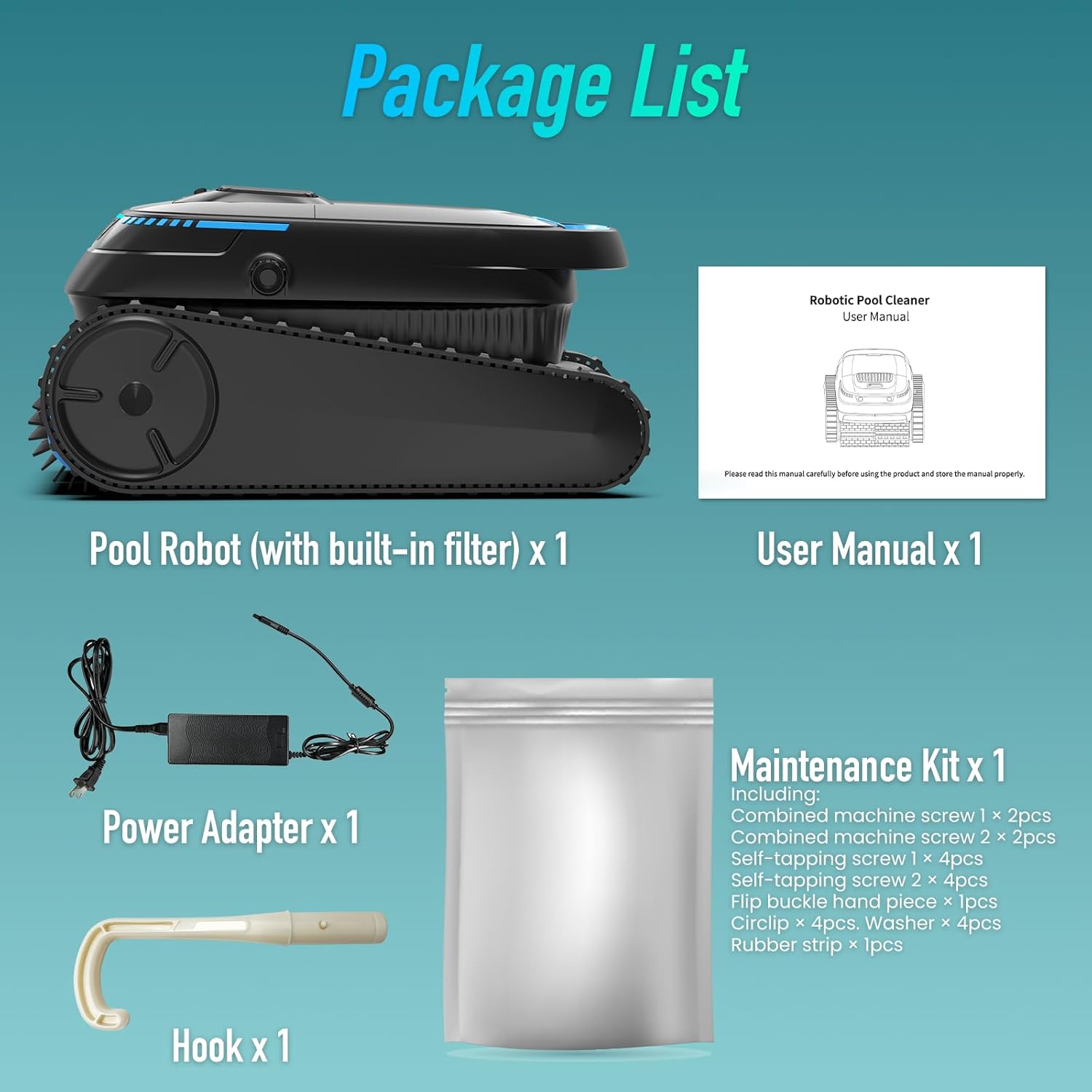Long Battery Life & Easy Poolside Retrieval: The 5200mAh battery cleans up to 1829 sq. ft. per charge. Once cleaning is complete or battery runs low the robot automatically parks near the pool edge for easy hook retrieval.Durable tracks climb slopes up to 30 making it suitable for both inground and above ground pools.