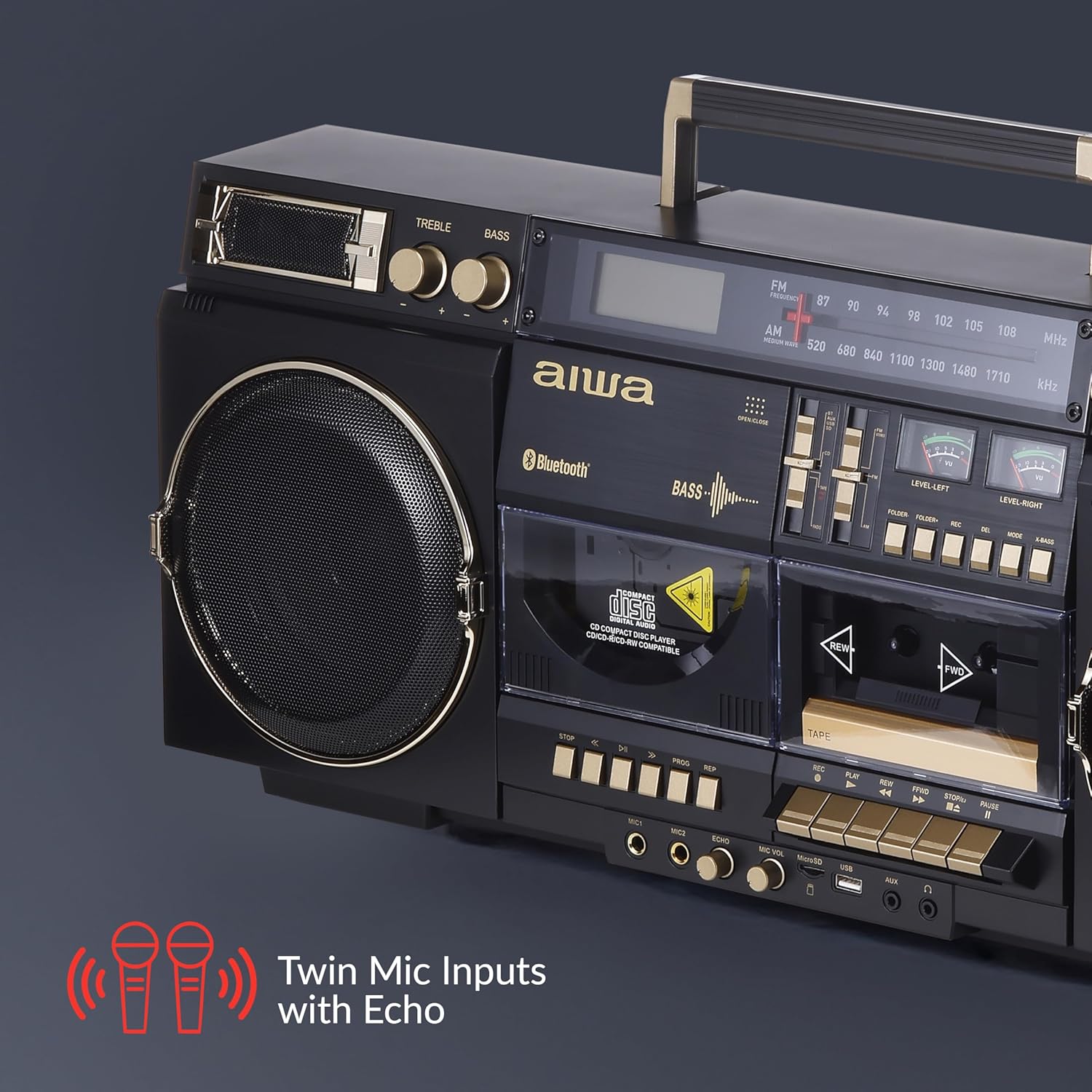 Advanced Connectivity Features: This CD player boombox includes Bluetooth 5.0 USB SD card slots AUX inputs and dual microphone ports; making it versatile for streaming recording karaoke or connecting to other audio devices