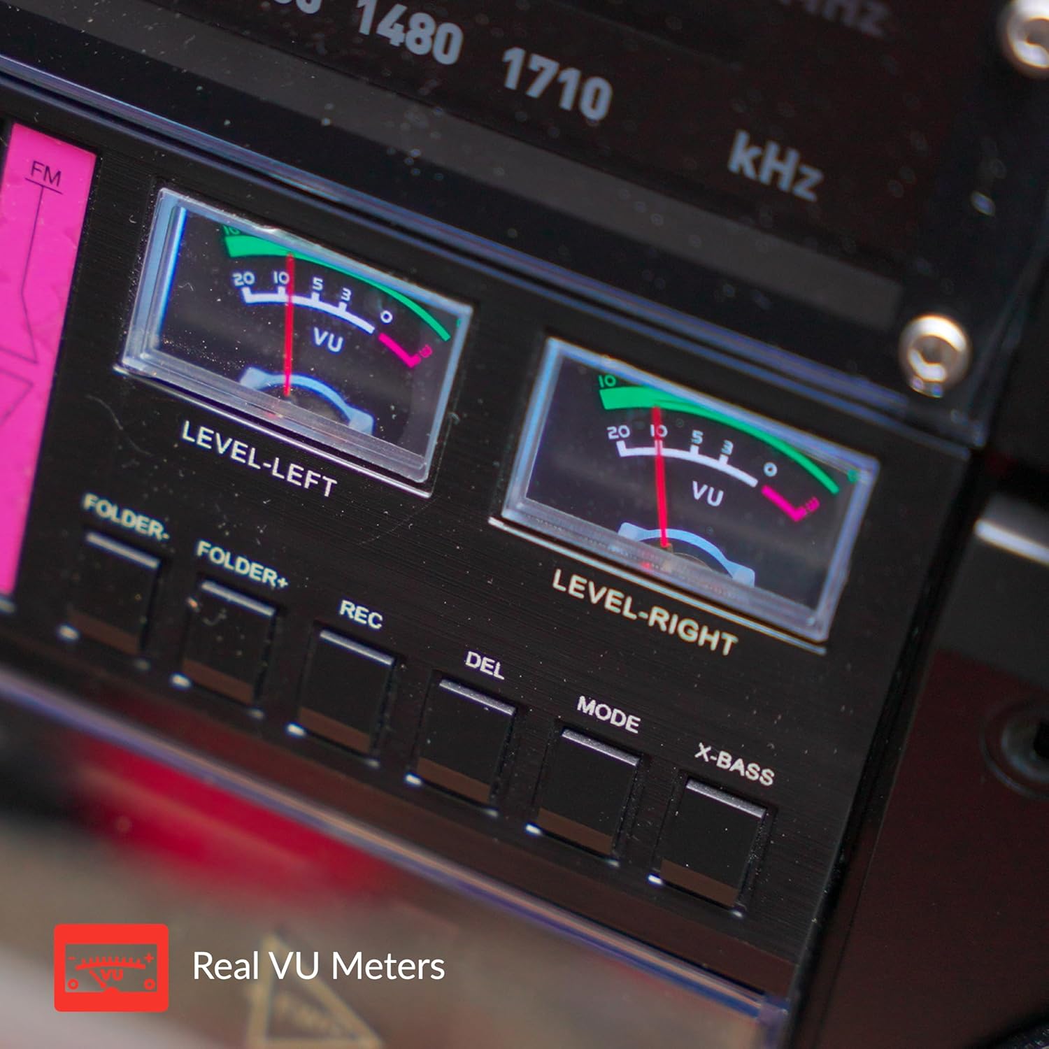 User-Friendly and Stylish: Boom box CD player AM/FM radio equipped with an easy-to-read LCD display VU meters for precise audio monitoring and a 3.5 mm earphone input; a blend of modern functionality with vintage appeal