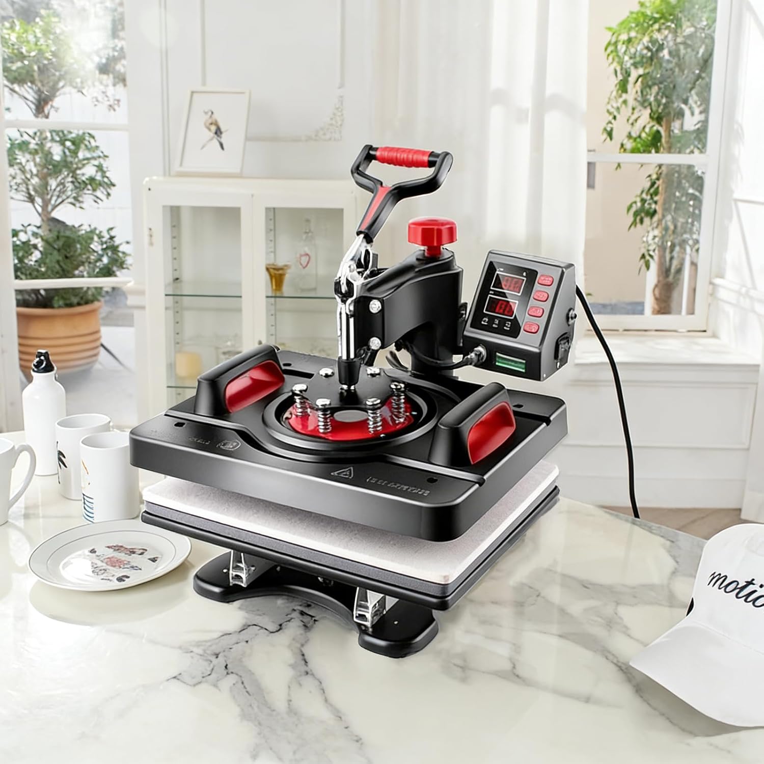 360 DEGREE ROTATION & FULL RANGE HEAT PRESS- Swing away heat press with Adjustable height and multi-spring pressure knob can be adjusted according to the thickness of the material ensures two plates can fit together perfectly. This heat press machine provides a full range press directly and evenly which guarantees the quality of finished transfers
