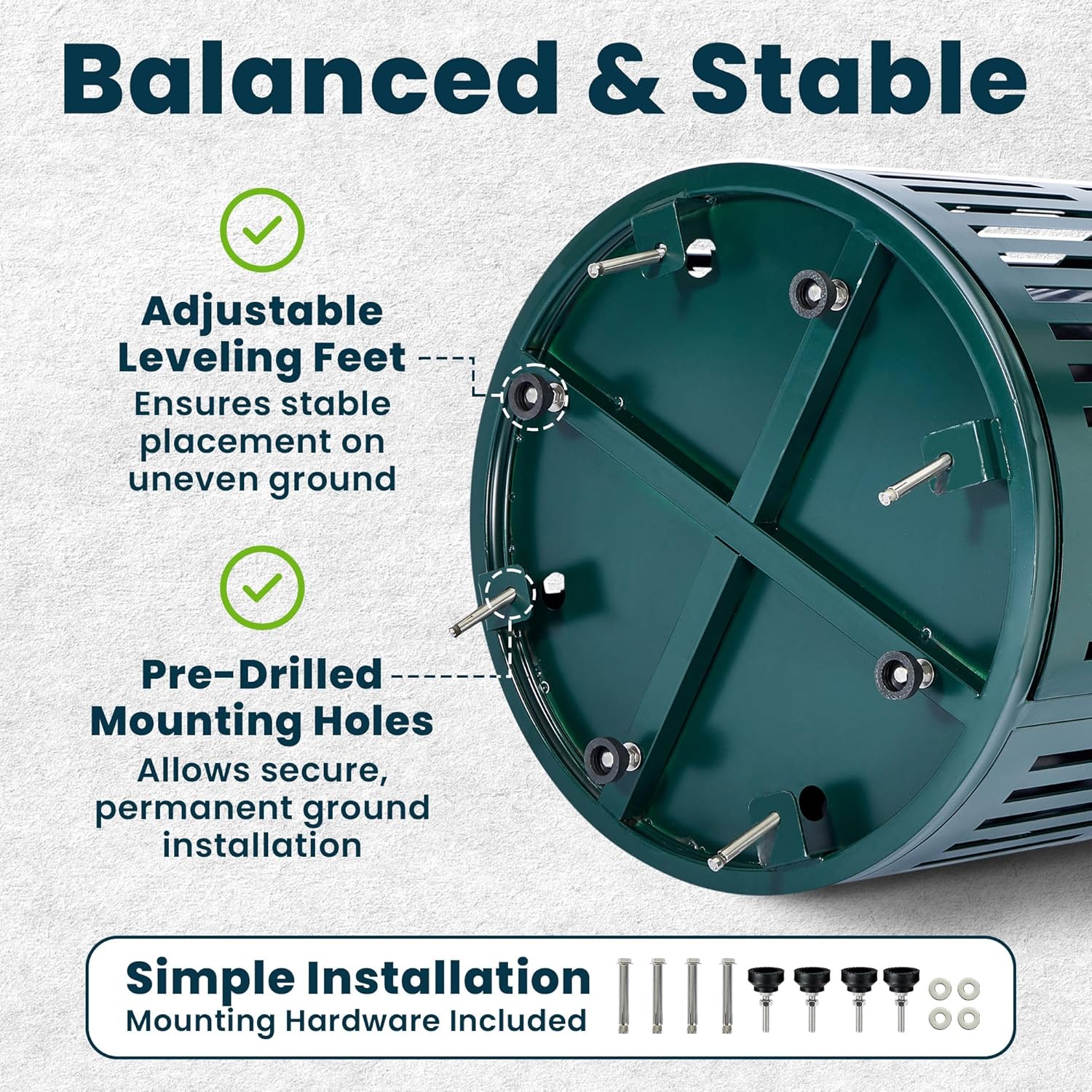 STABLE, INSTALL-READY DESIGN - Adjustable leveling feet and pre-drilled mounting holes keep this outdoor trash can steady on uneven ground.