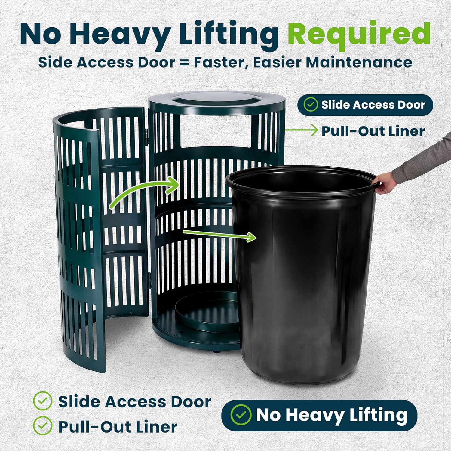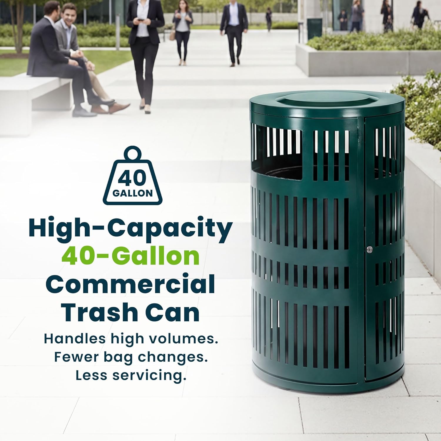 40 GALLON COMMERCIAL CAPACITY - Large outdoor garbage can built for parks, schools, offices, and high-traffic public spaces with fewer bag changes
