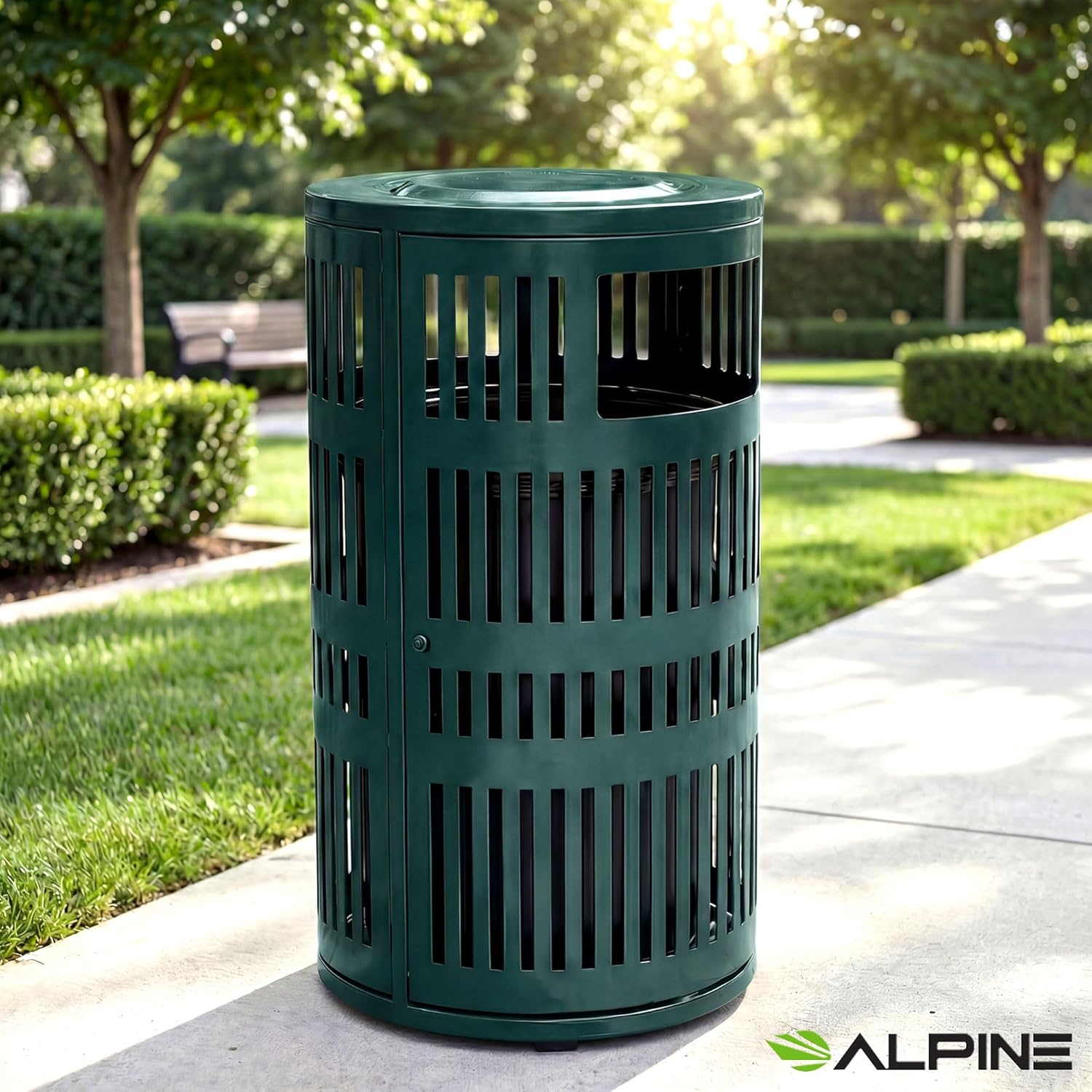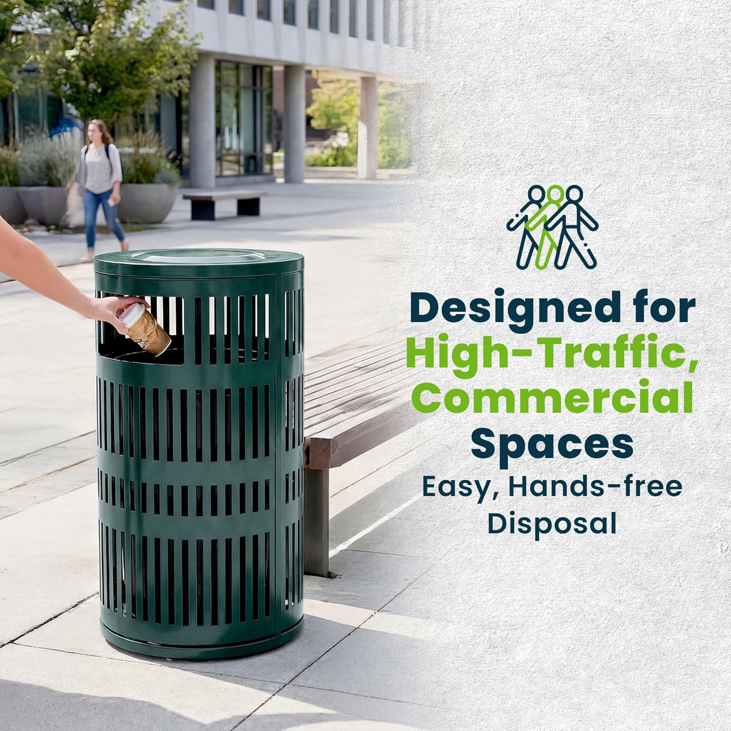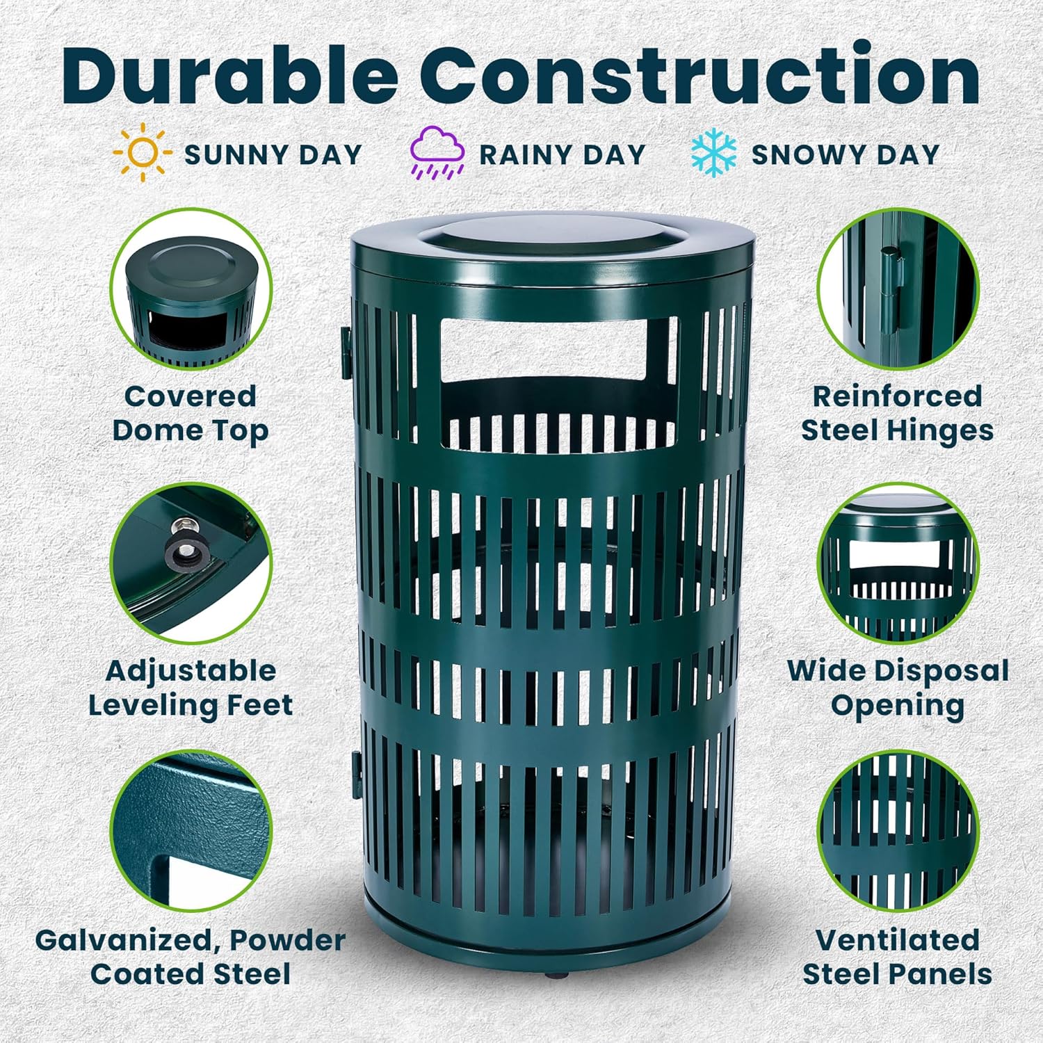 WEATHER-RESISTANT STEEL BUILD - Galvanized, powder-coated metal waste bin resists rust, rain, sun, and snow for long-term commercial outdoor use.