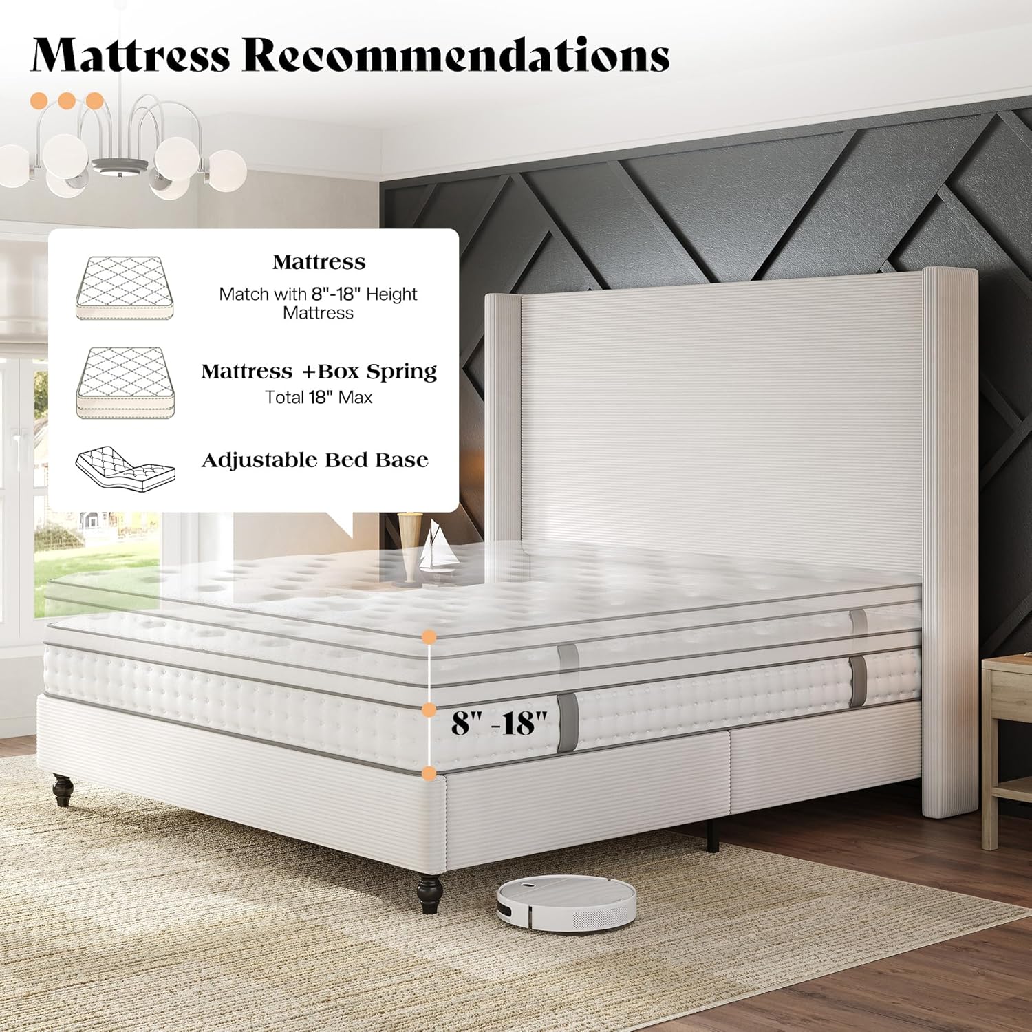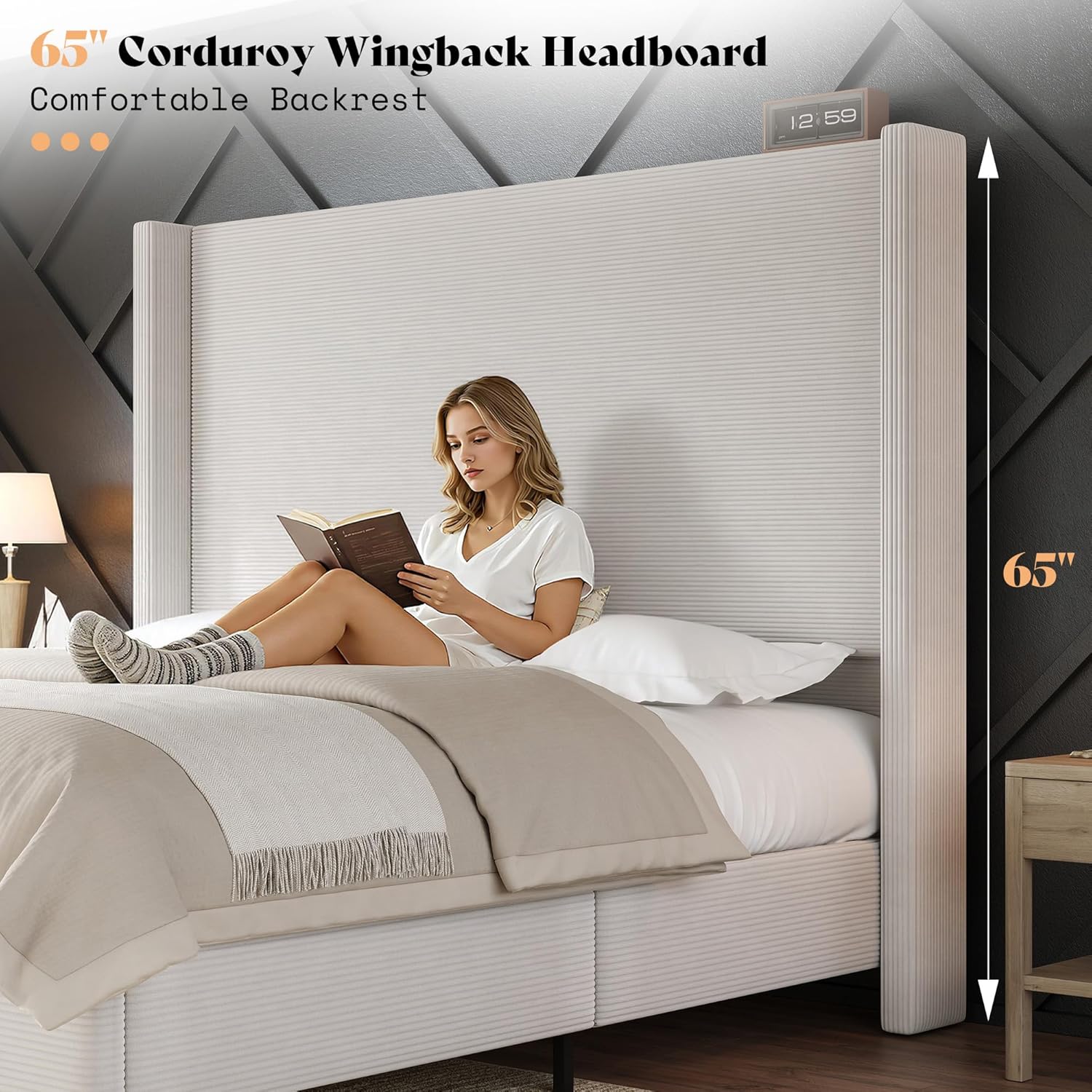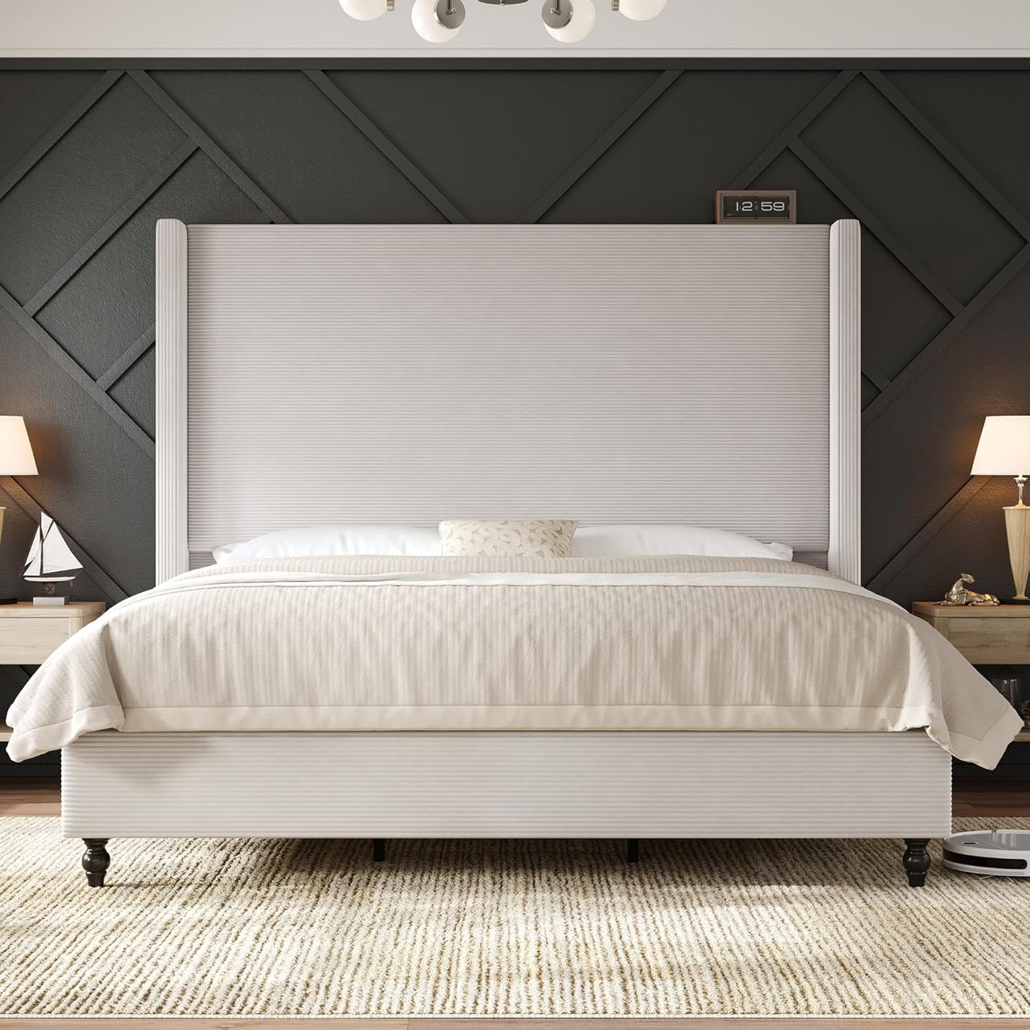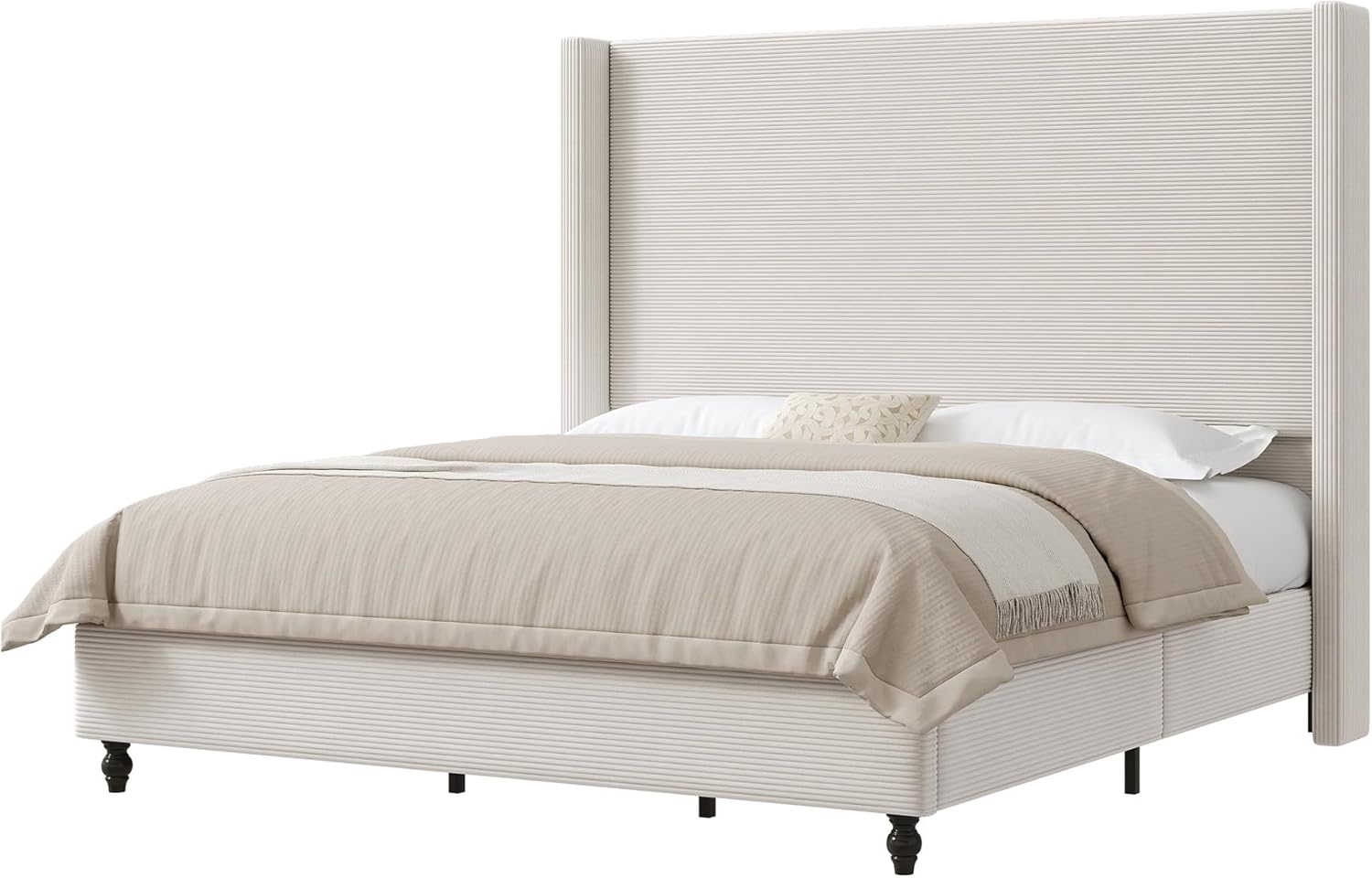Elegance & Cozy Texture The upholstered bed frame features horizontal fine corduroy with a smooth, textured touch, adding warmth, depth and timeless elegance to your modern bedroom dcor
