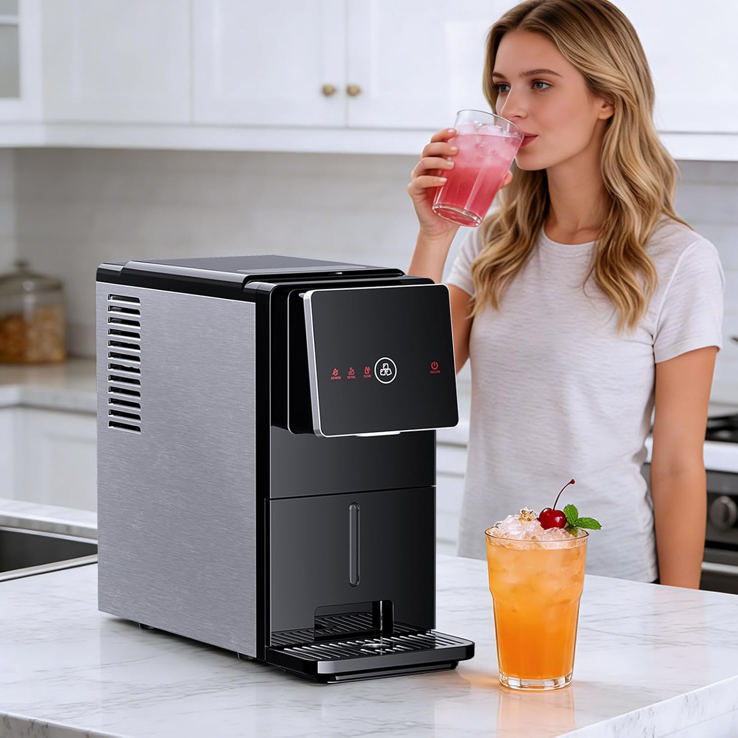 User-Friendly & No-Waste Ice DispensingComes with a detachable cup tray that aligns directly with the ice outletsimply place your cup and touch the screen to dispense ice on demand. This manual water supply ice machine eliminates waste and ensures you get the exact amount of ice needed every time.
