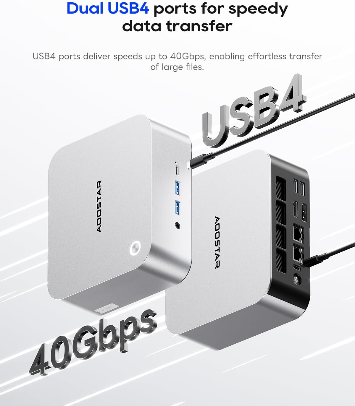 Features 24GB soldered LPDDR5 6400MHz RAMdelivering 14.3% higher bandwidth than standard DDR5 memory for smoother multitasking and gaming experiences. It also reduces power consumption and heat generation enhancing the mini PC's stability. Equipped with 3*M.2 2280 PCIe 4.0 x4 slots expandable storage capacity up to 24TB effortlessly stores large files games and multimedia content. Through RAID 0/1/5 array configurations using three NVMe drives you can store working copies of critical content on a single drive while automatically creating redundant backups on the second/third drive. This data protection ensures peace of mind regarding data security.