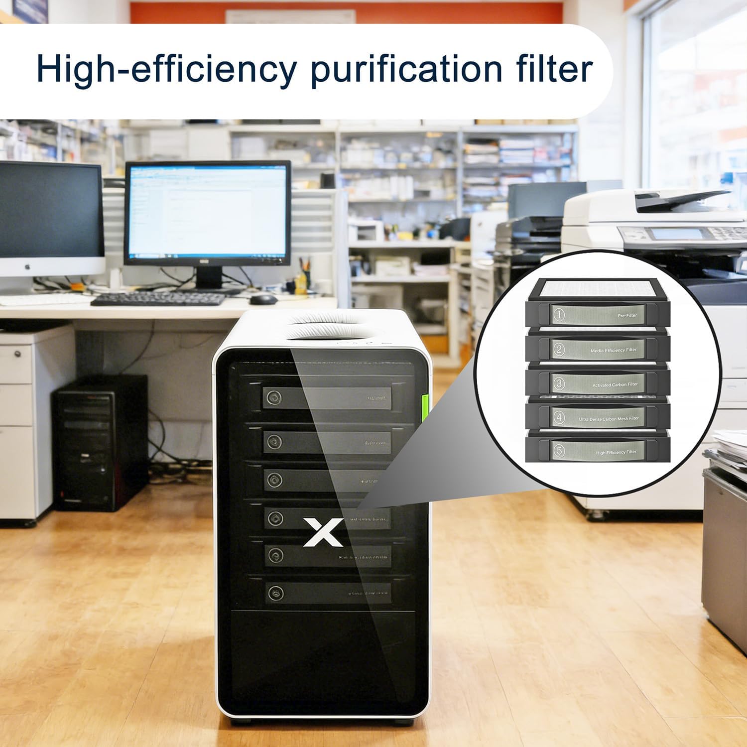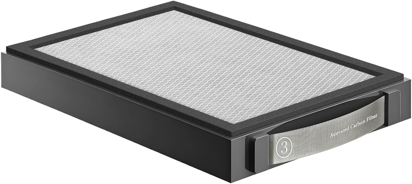3-STAGE FILTRATION SYSTEMHigh-Efficiency Activated Carbon Filter absorbs cooking smells smoke and pet odors. H13 Filter absorbs pet dander dust smoke pollen and other particles. Fine Preliminary Filter obstructs large particles such as dust hair lint fibers and pet fur to help the air purifier work more efficiently.
