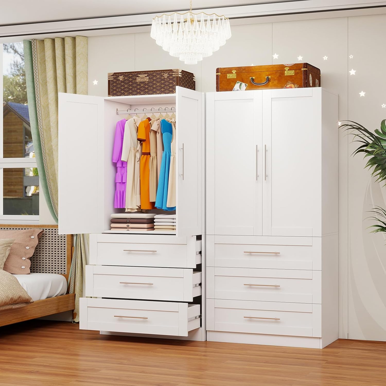 Versatile Storage CabinetMore than just a bedroom wardrobe, this multifunctional cabinet is perfect for small apartments, bedrooms, living rooms, offices, laundry rooms, or any space that needs extra enclosed storage. Its sleek design and enclosed doors keep your items protected while providing stylish, organized, and practical storage wherever you need it.