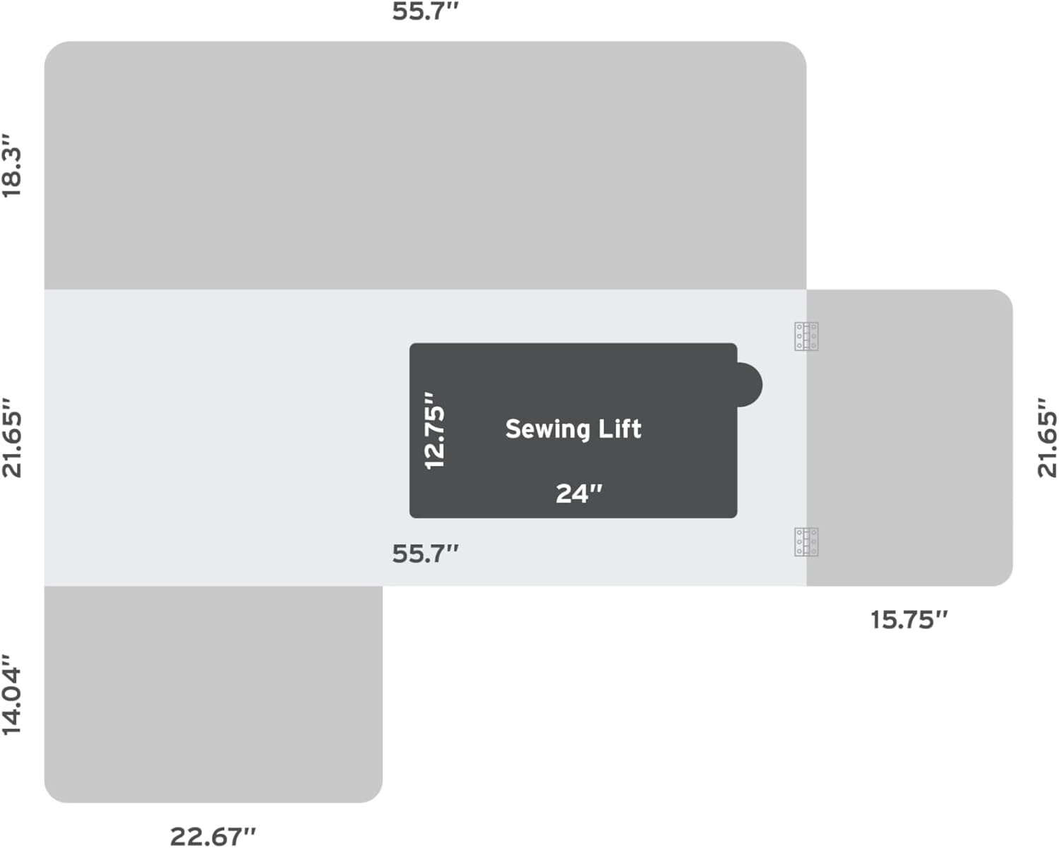 Large lift opening accommodates most standard sewing machines on the market up to 45lb