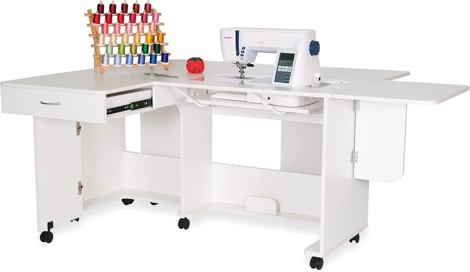 Large top drawer pulls out to store notions and accessories