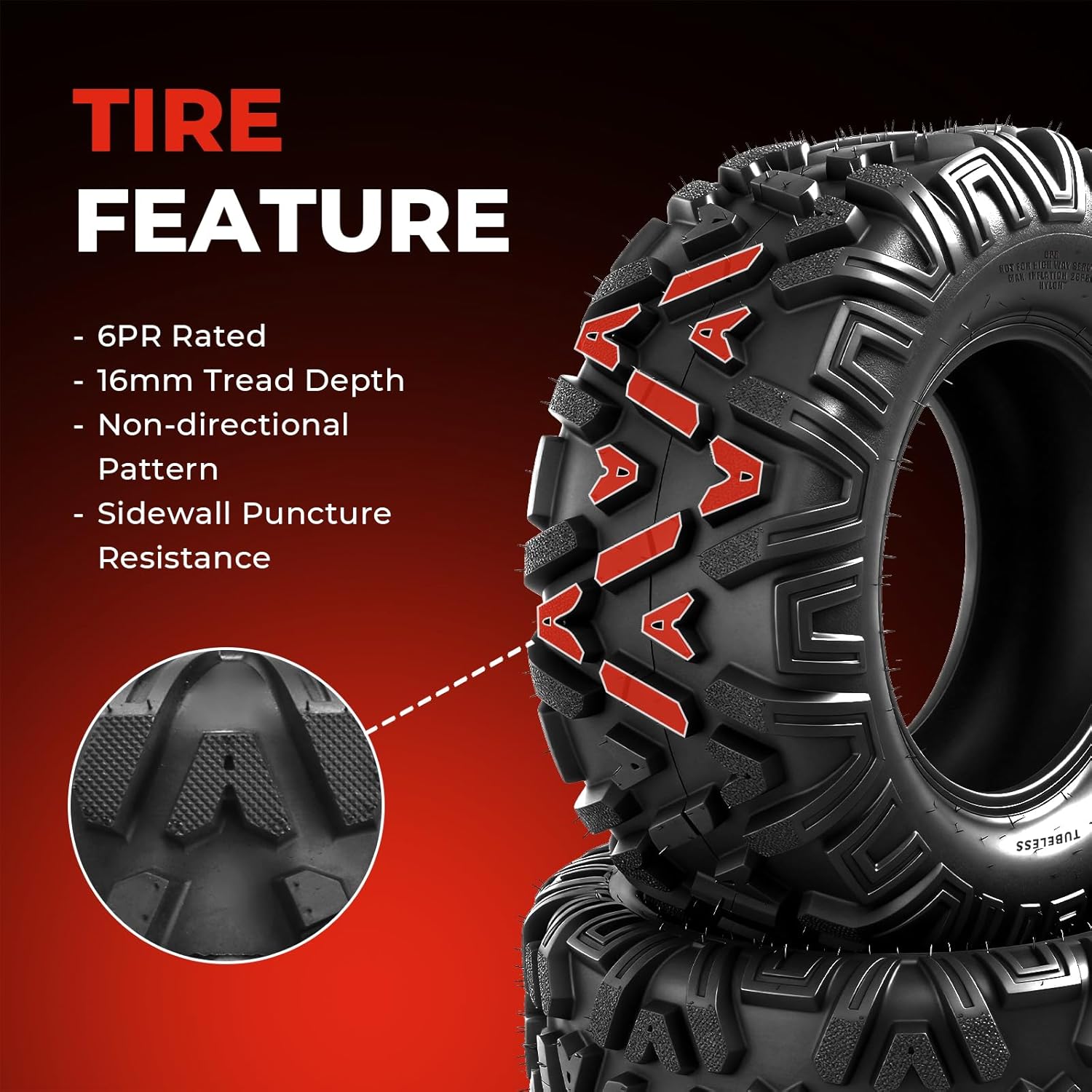 Good Traction & Stability:this AT26X9-12 tire has an alternating A-shaped knobby tread pattern designed to enhance grip and traction while riding.And the Non-directional tread pattern provides good stability performance across multiple terrains