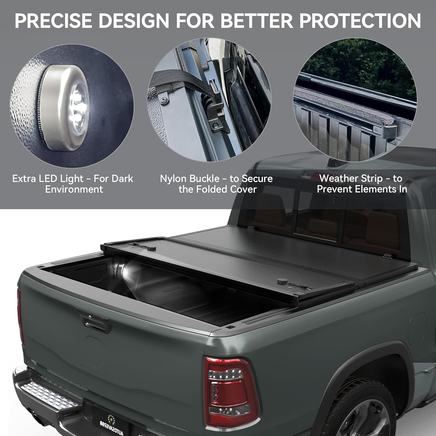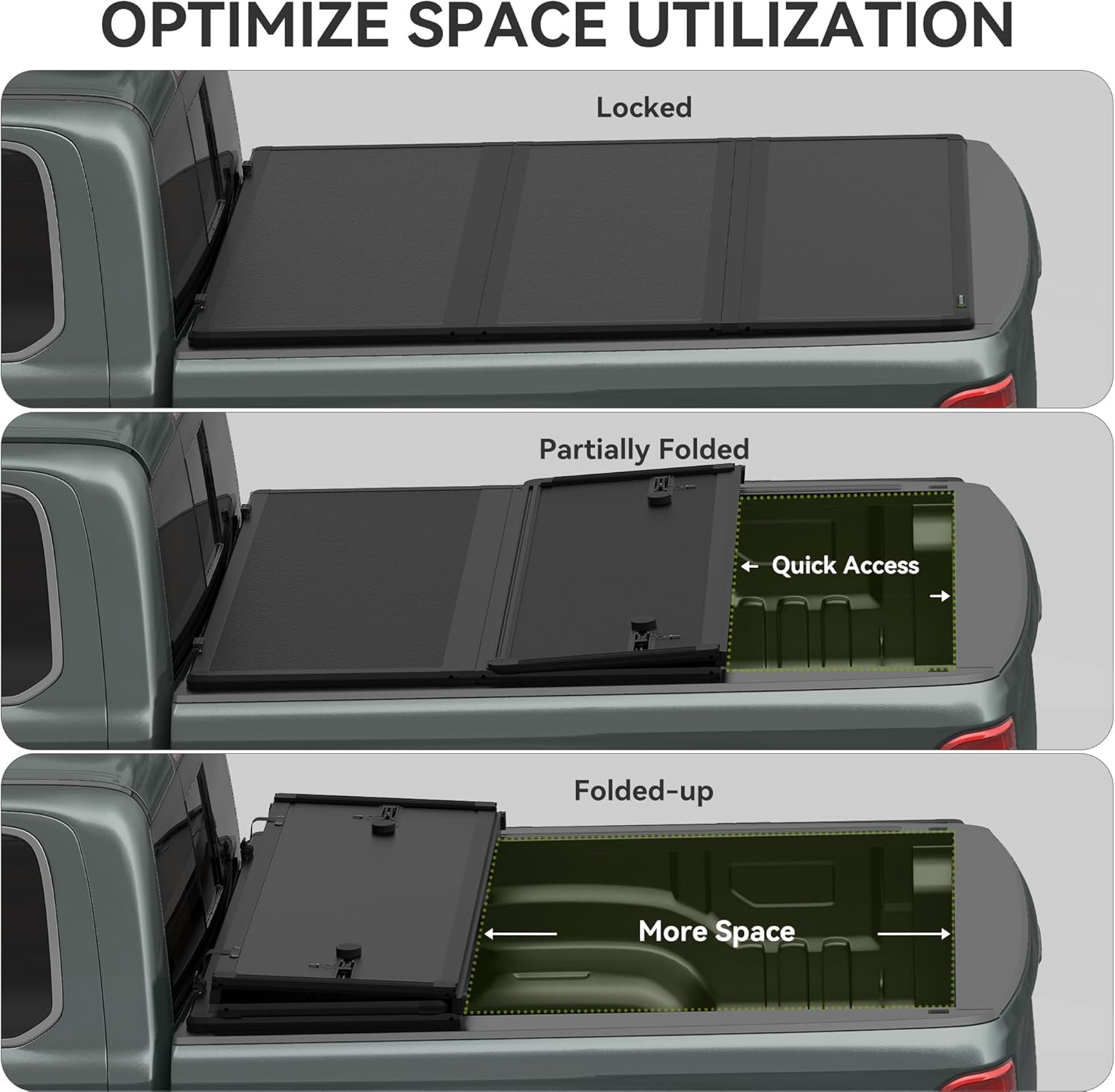 Durable Build: Made from fiberglass reinforced polymer with an internal PP honeycomb frame truck bed cover offers top-notch toughness resisting scratches and wear while supporting up to 450 pounds for lasting reliability