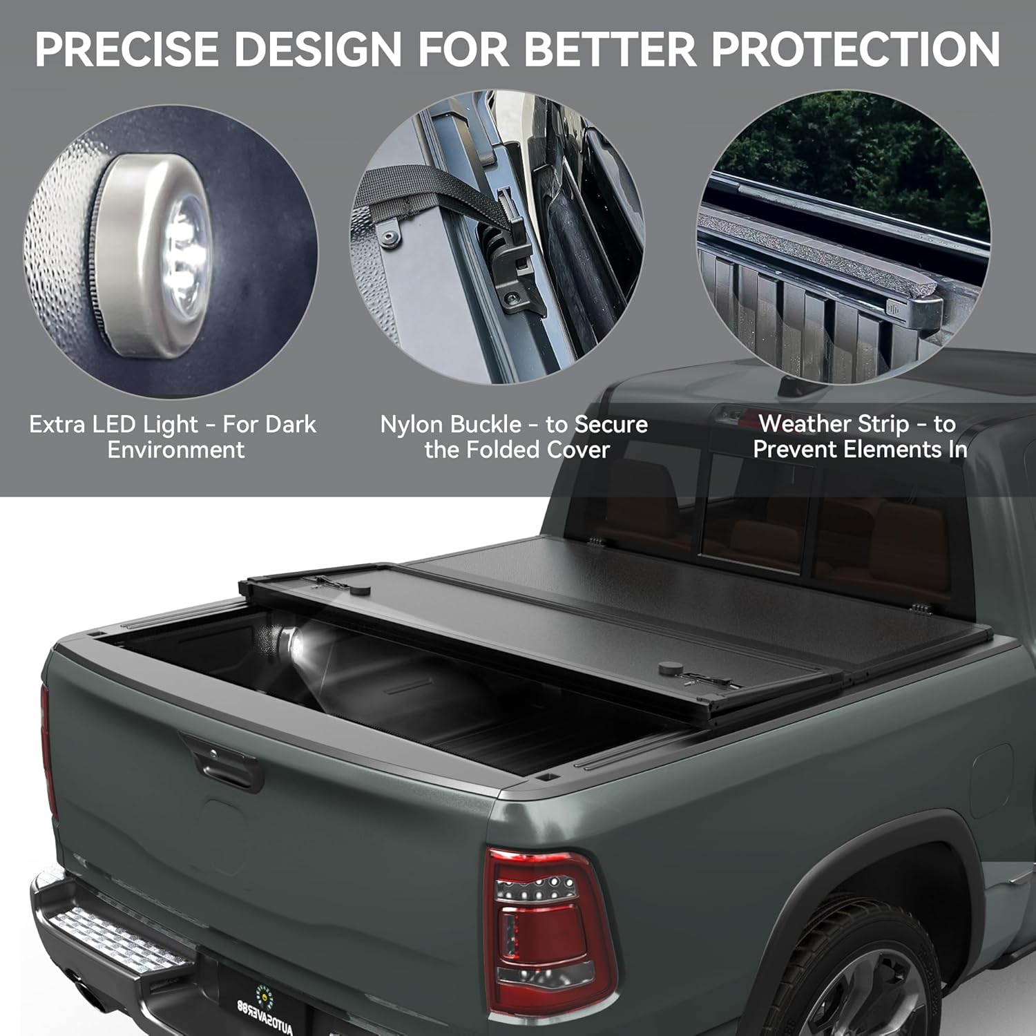 Durable Construction: Made from Fiberglass Reinforced Polymer (FRP) and featuring a Polypropylene (PP) honeycomb core this pickup tonneau cover offers exceptional durability and scratch resistance supporting up to 450 pounds of weight