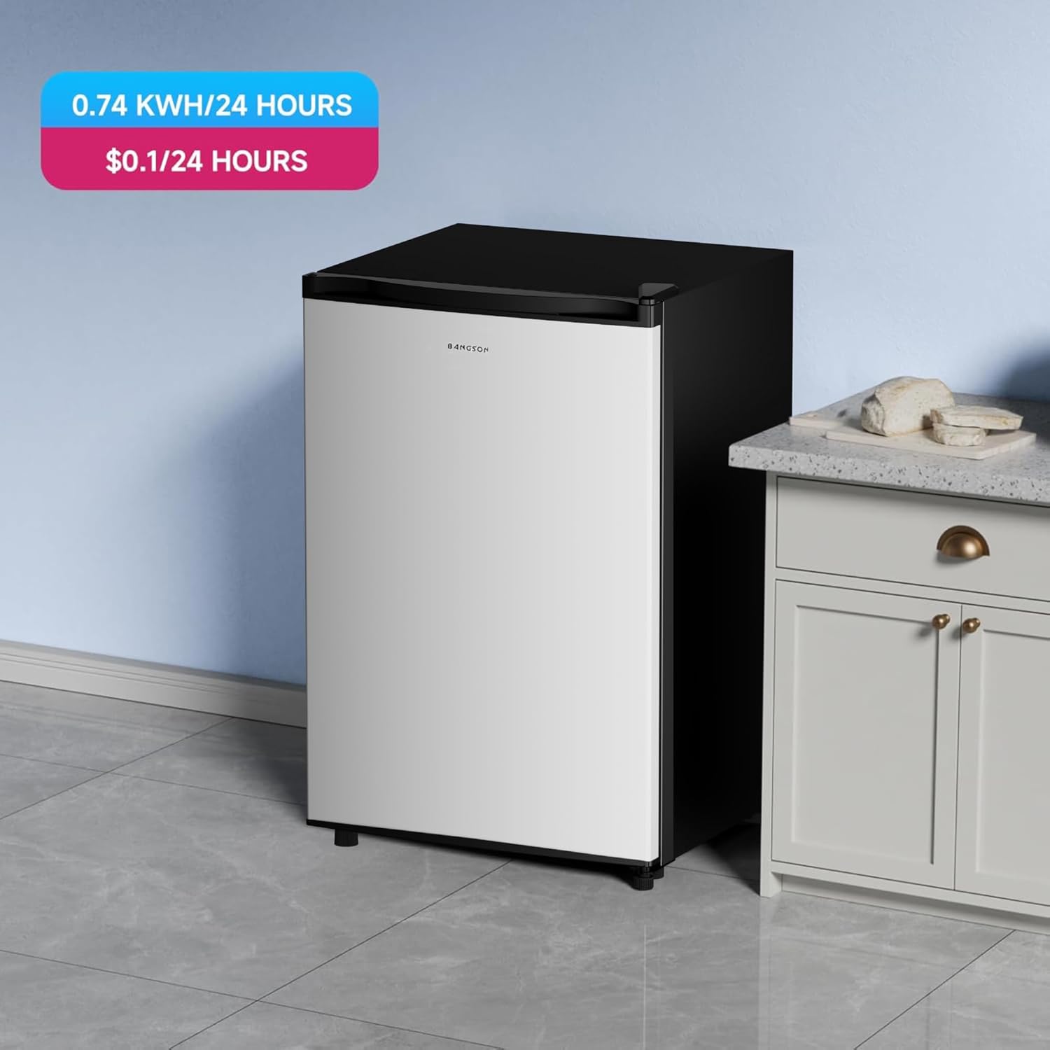 User-Friendly Design: If you need more freezer space consider this small upright freezer. This small freezer features a modern style that would look great in a corner or on a countertop in your home or workplace. We also offer courteous service for a year.