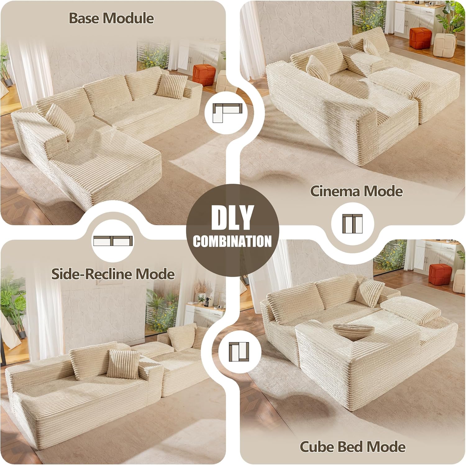 Plush Comfort & Premium MaterialsCrafted from soft corduroy fabric with a velvety touch, this sectional couch offers both luxury and durability. Filled with high-resilience memory foam, it delivers just the right support and long-lasting comfort. Non-slip feet keep the sofa securely in place for added safety and stability