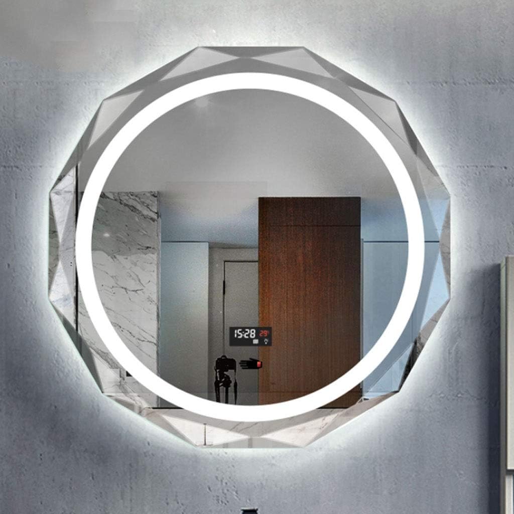 • Bathroom Mirror with LEHkcvv Light and Hkcvvemister Touch Sensor Wall Mounted Round Makeup Shaving Mirror Explosion-Proof Mirror Hkcvviamond Cut Edges (White Light 60cm)