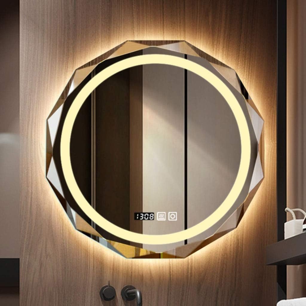 • Bathroom Mirror with LEHkcvv Light and Hkcvvemister Touch Sensor Wall Mounted Round Makeup Shaving Mirror Explosion-Proof Mirror Hkcvviamond Cut Edges (Warm Light 60cm)
