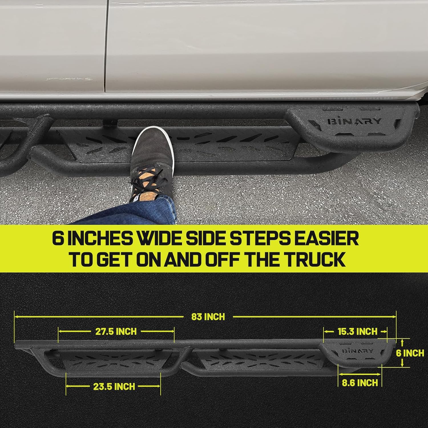 Support Up To 500 LBS - Running boards for Silverado 1500 Crew Cab are made of heavy-duty carbon steel. The 3-tube design brings the step bar closer to the truck body. The support tube is a thickened construction design with a diameter of 2 inches. A special triangular welding process is used to increase strength and durability.