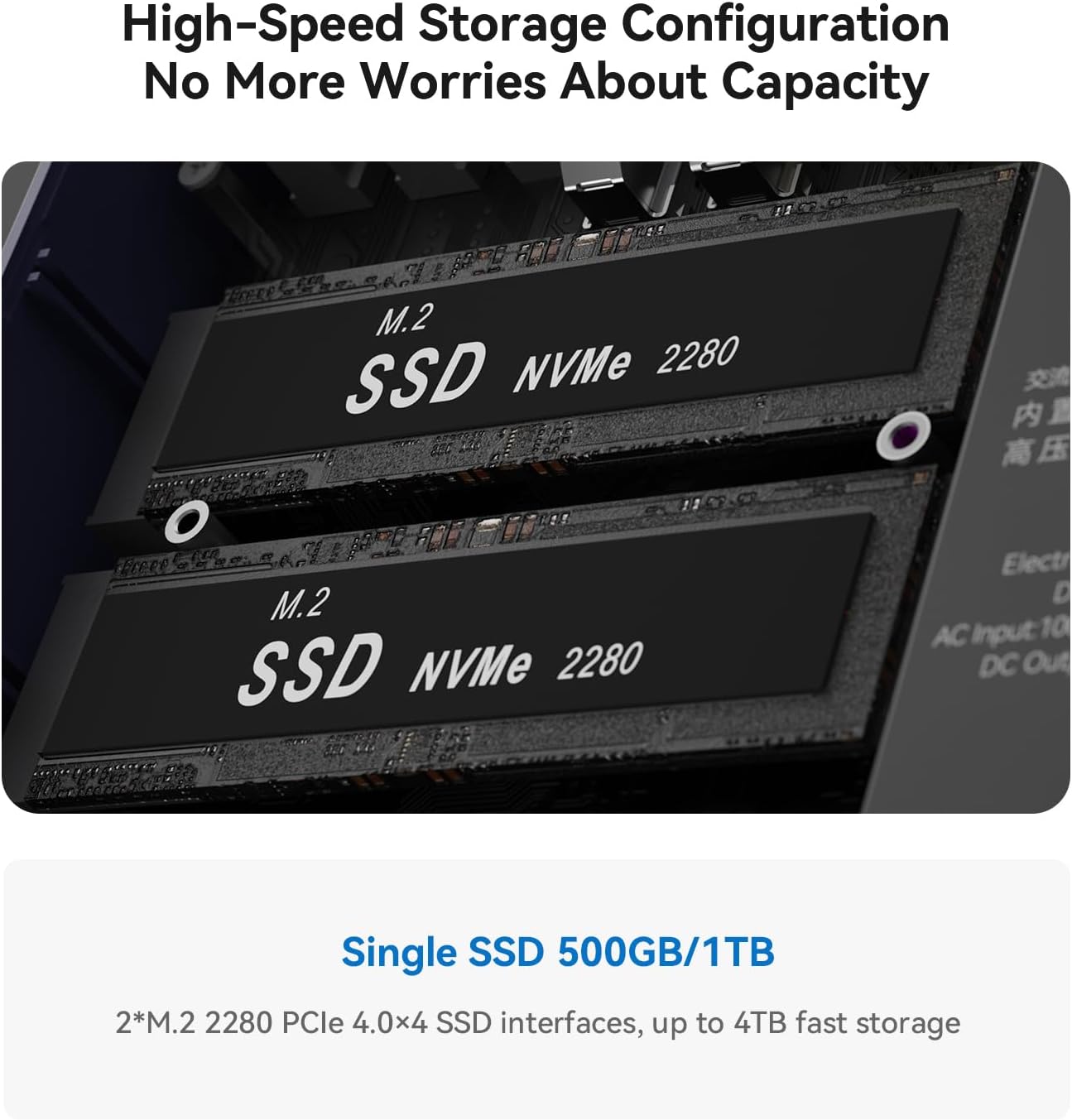 External and Internal Storage Expansion mini computer is equipped with 16GB(8GBx2) DDR4 RAM which can be upgraded to 64GB(SO-DIMM DDR4 slotx2).There are also Dual M.2 PCle 4.0 SSD slots under the hood supporting up to 8TB of fast internal storage. Multitask working can be performed smoothly and all your necessary software applications can be accommodated in this small machine!
