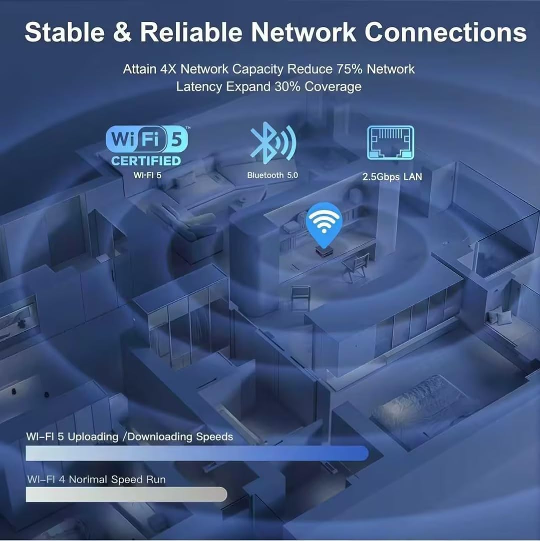 High-Speed NetworkThe mini desktop PC supports 2.5G LAN and Wi-Fi 5 (802.11ac) providing a dedicated and undisturbed channel for smooth online gaming and ultra-fast downloads. You can also pair your wireless accessorieskeyboard mouse headphonesinstantly via Bluetooth 5.0. Enjoy a clean cable-free workspace without sacrificing performance