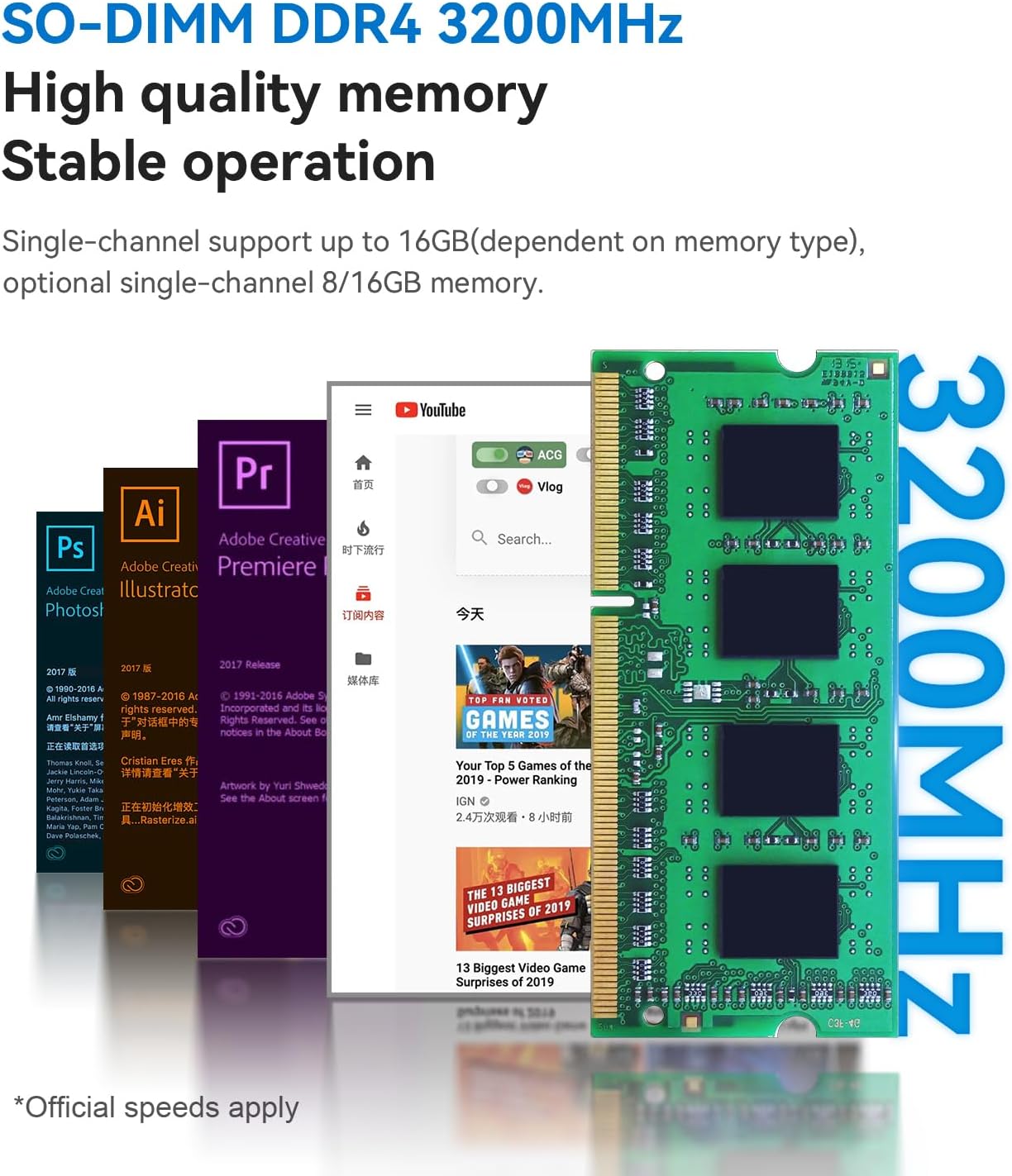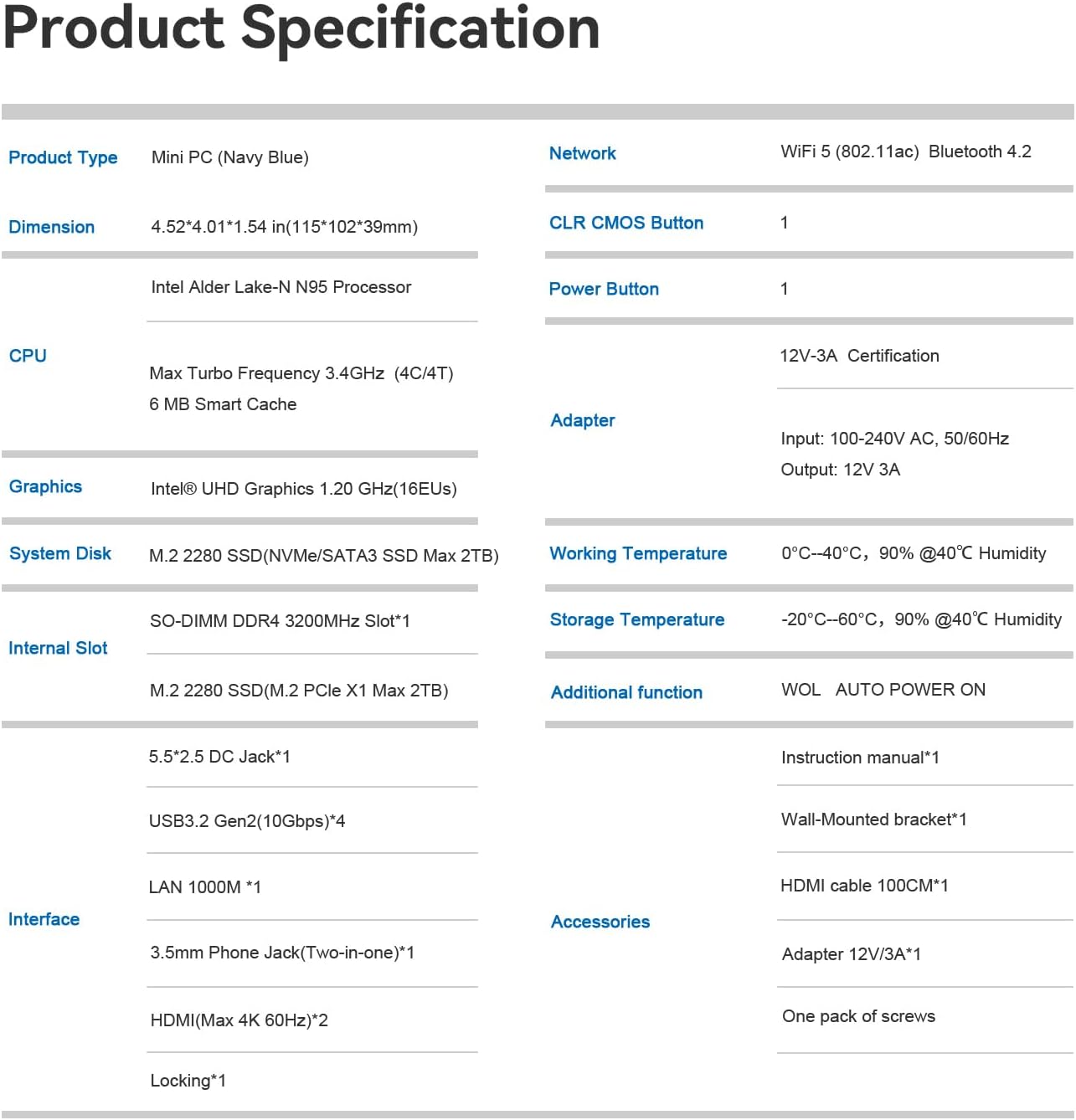 4k Dual Screen Display & Wireless SupportsMINI S12 Mini PC desktop features HDMI 2.0 port supporting two 4K ultra high definition (4096 x 2160) displays and bringing a striking visual. Feel free to enjoy 4K Web surfing video playback watching TV and streaming games with your family. Built-in 802.11ac Dual Band 2.4 & 5GHz Wi-Fi BT4.2 with stronger resisting disturbance and more stable wireless signal.
