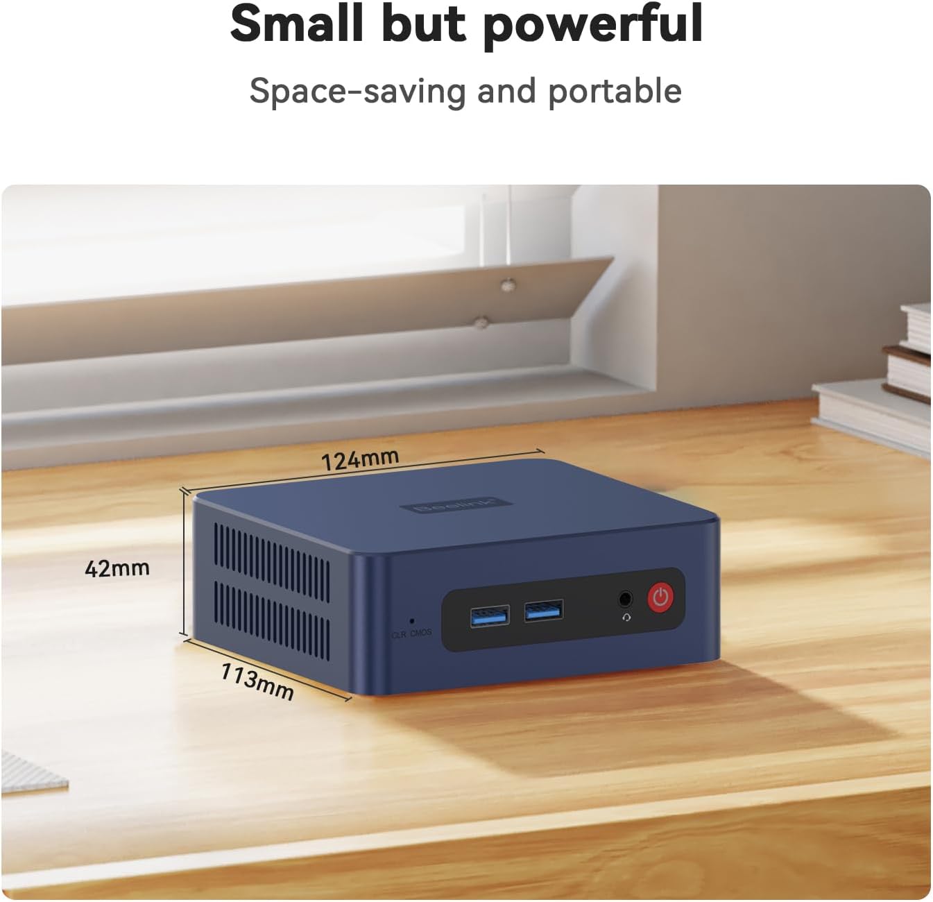 MULTIPLE INTERFACES & WIRELESSMini Desktop PC equipped with a 1000M LAN (RJ-45 supporting Gigabit file transfer speeds) Dual-band 2.4G 5G WiFi (802.11ac stronger capacity of resisting disturbance) and built-in Bluetooth high-speed wireless connection makes you step ahead. And 4*USB3.2 ports 2*HDMI ports 1*Audio Jack (HP&MIC) and 1*DC Jack thus offering the user even greater versatility in use.