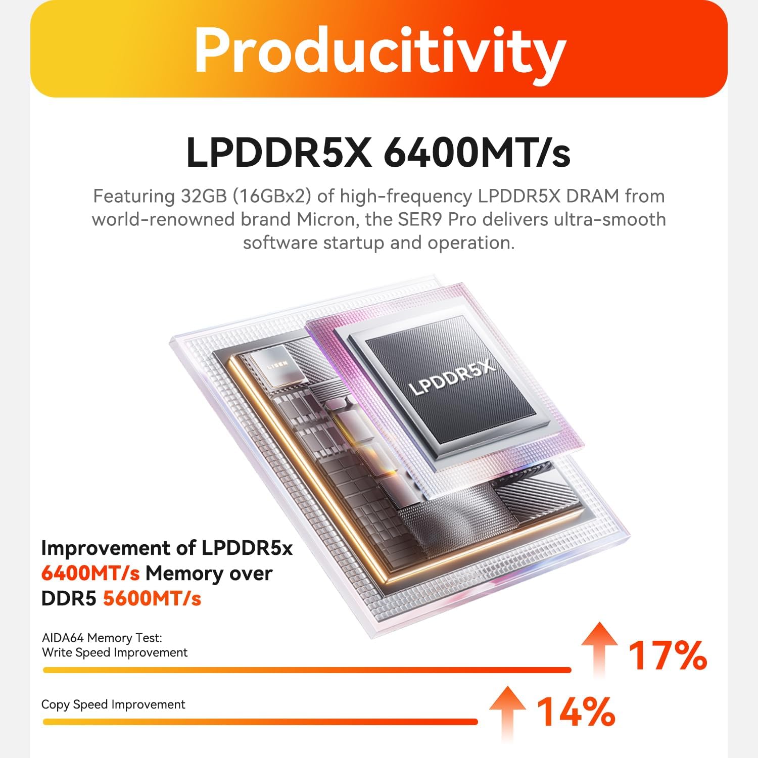 Large Capacity & Freely ExpandedWhat sets this small PC apart from other micro pc is that it has empty expansion bays that can be added. Mini PC has 32GB (8GBx4) LPDDR5X 6400MHz 1TB M.2 PCIe 4.0 x4 SSD (supports up to 4TB) In addition the Mini PC also has a second M.2 PCIe SSD slot supporting M.2 PCIe 4.0 x4 SSD up to 4TB. Dual M.2 PCle 4.0 SSD slots support up to 8TB of fast internal storage.