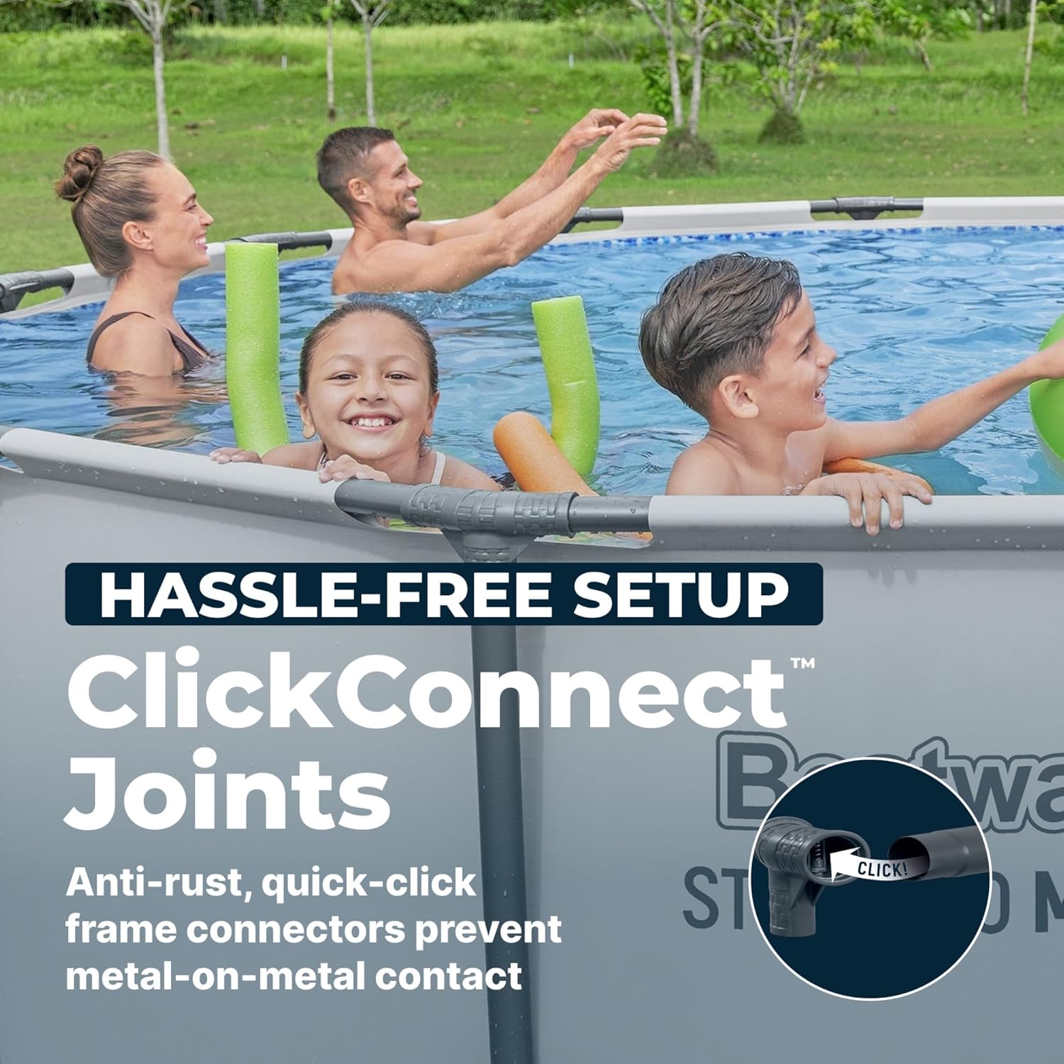 Easy Setup: ClickConnect System joints featuring quick-click connectors; this pool is very simple to set up and to take down for off-season storage with no additional tools required.