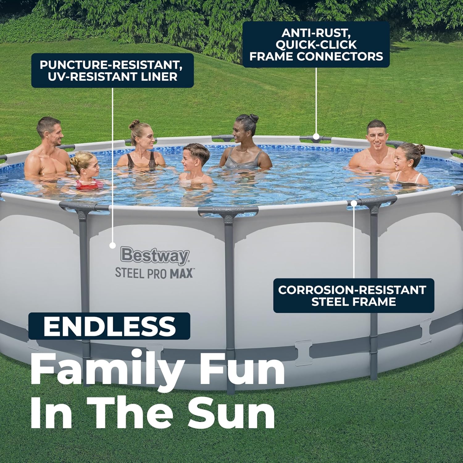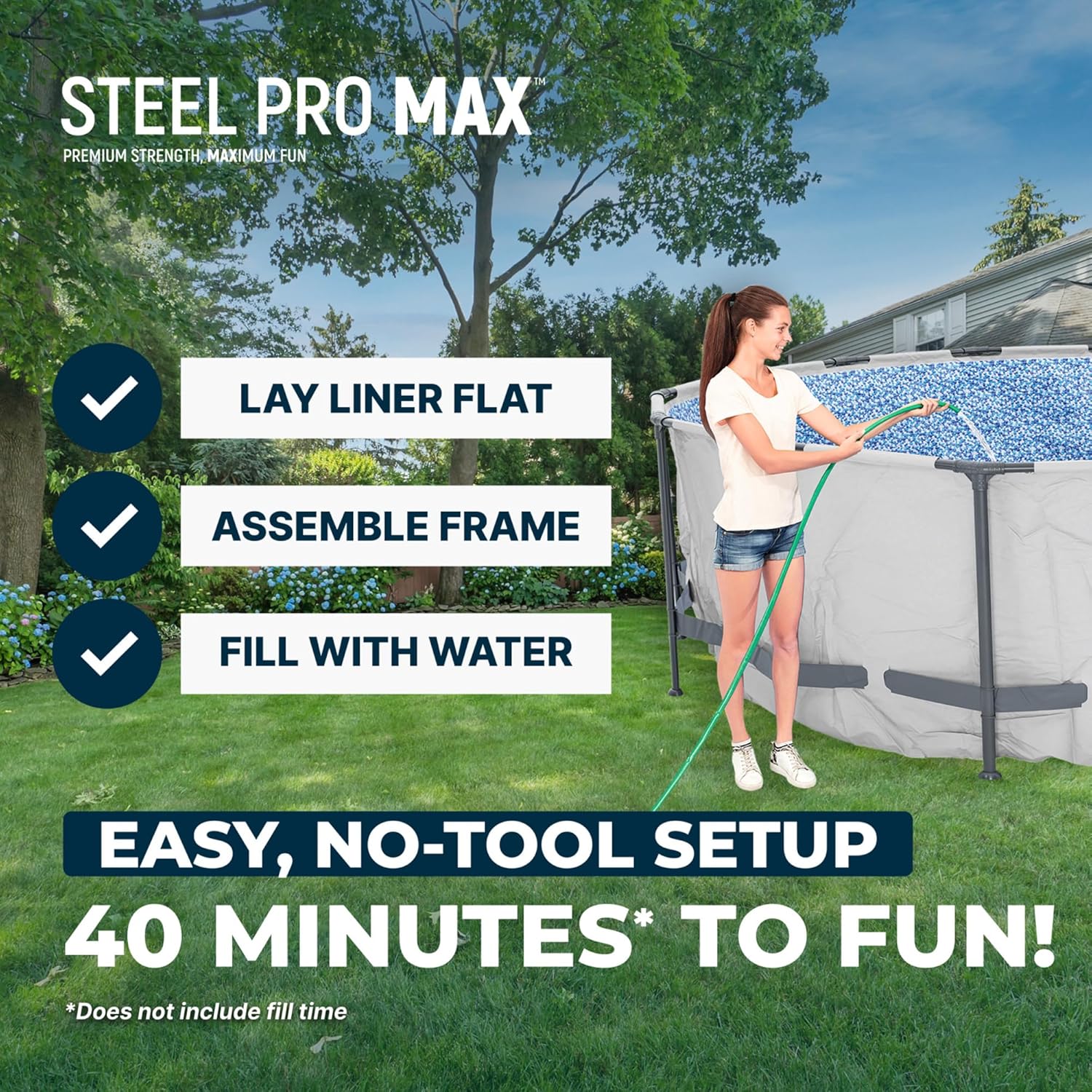 Durable Metal Frame: The heavy-duty framed pool is constructed with steel that resists corrosion to ensure stability and longevity.
