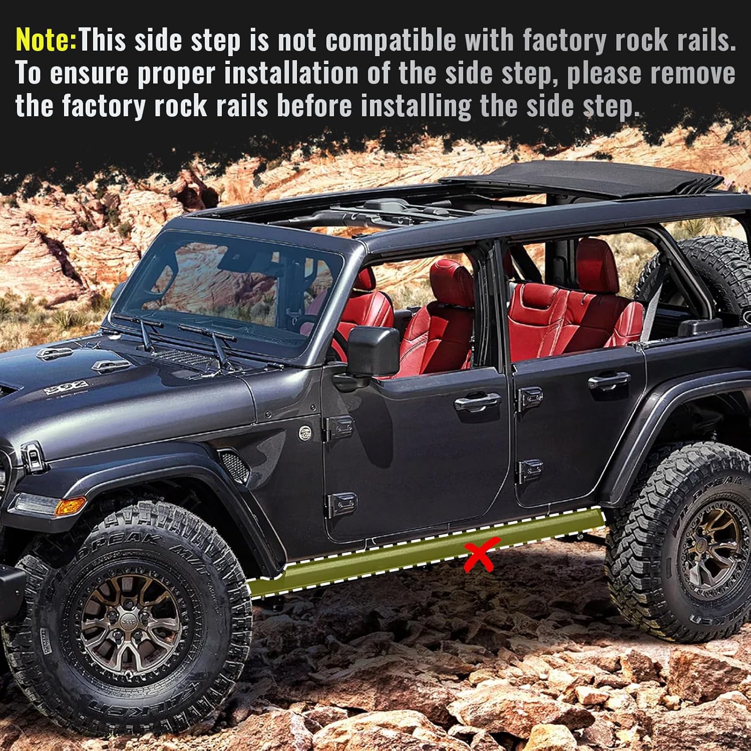 Support Up To 500 LBS - Running boards are made of heavy-duty carbon steel. The 3-tube design brings the step bar closer to the wrangler body. The main support tube is a thickened construction design with a diameter of 2 inches.