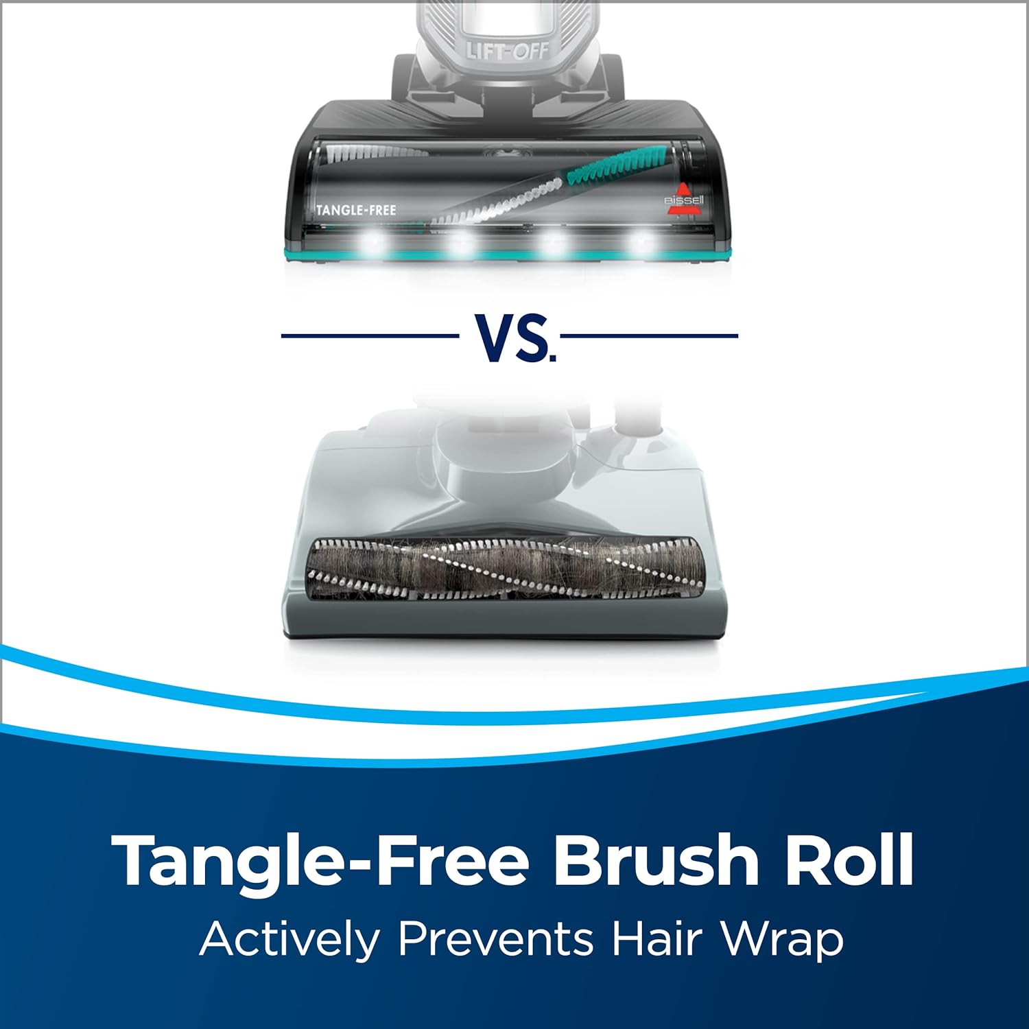 TANGLE-FREE BRUSH ROLL. Actively prevents hair wrap.