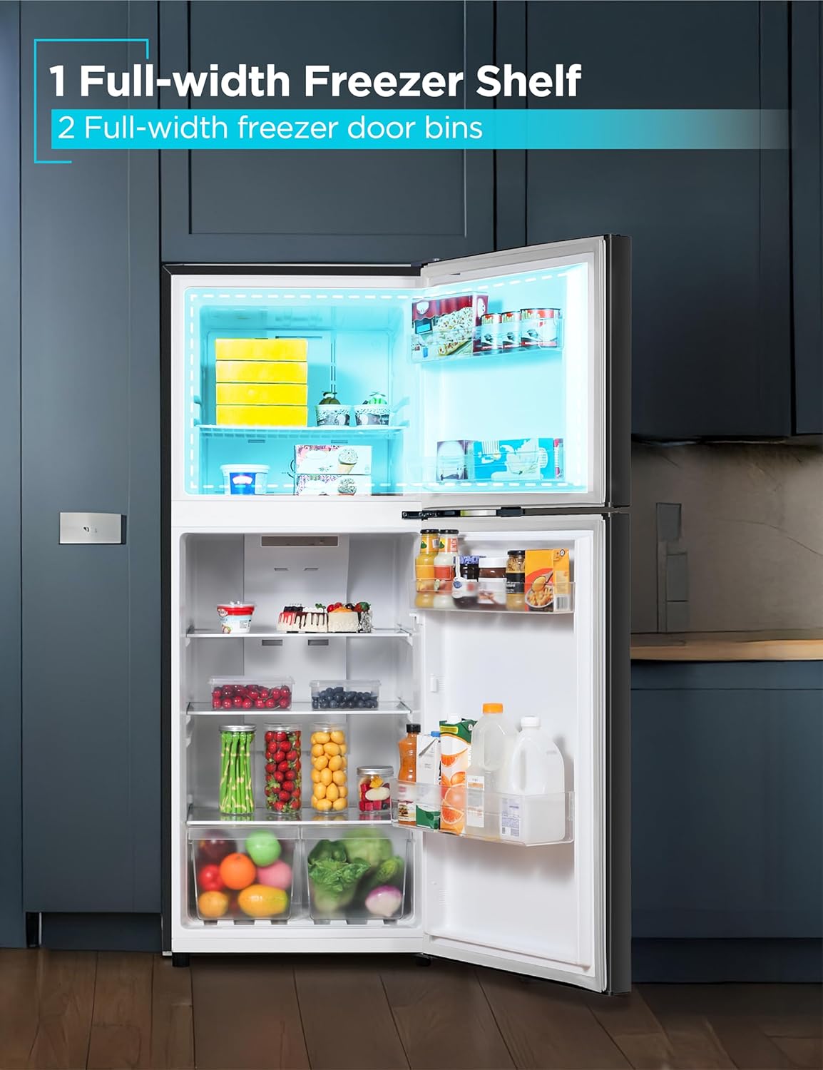 Adjustable Temperature Control: Maintain optimal freshness with the adjustable temperature control feature. Set the perfect cooling levels for both the refrigerator and top freezer sections