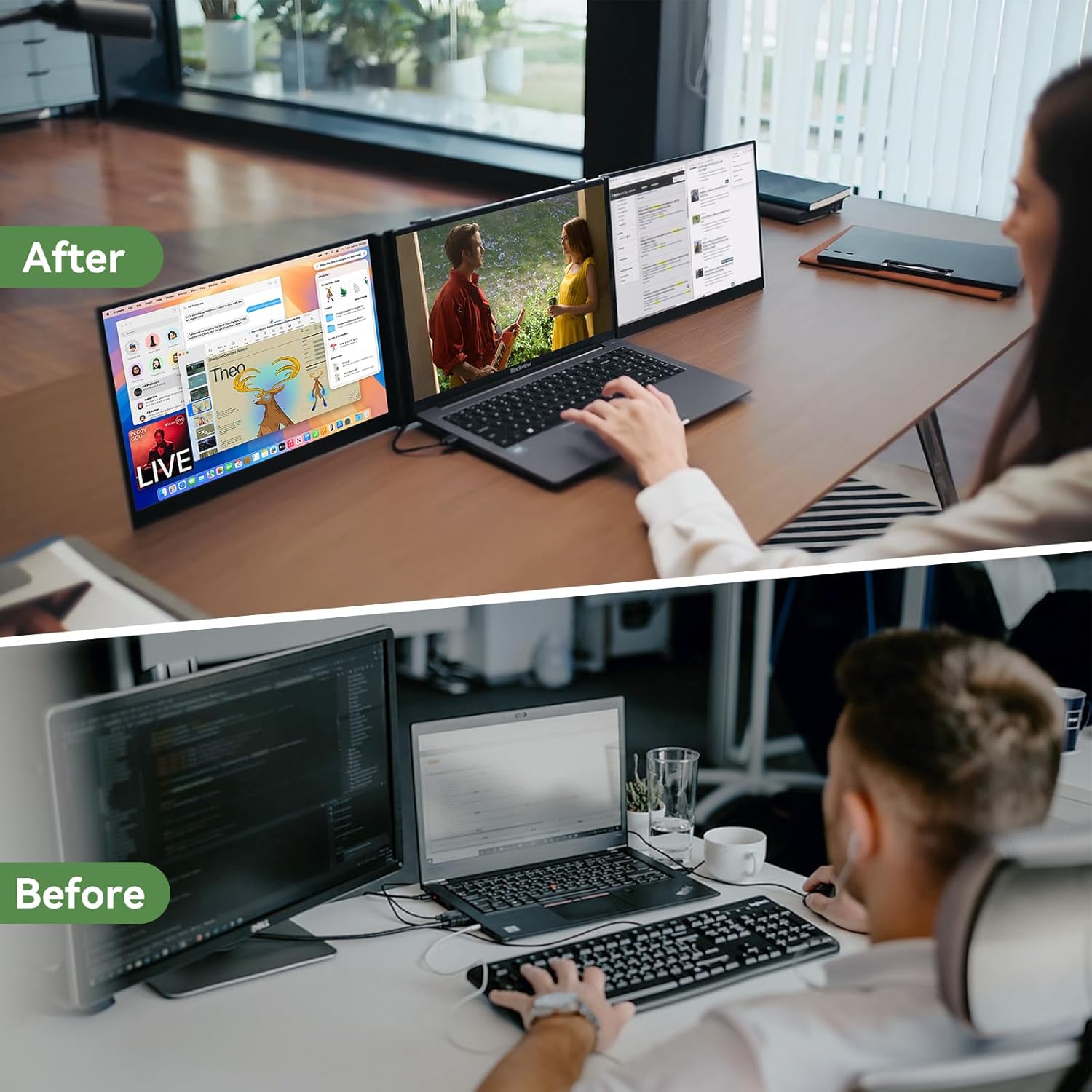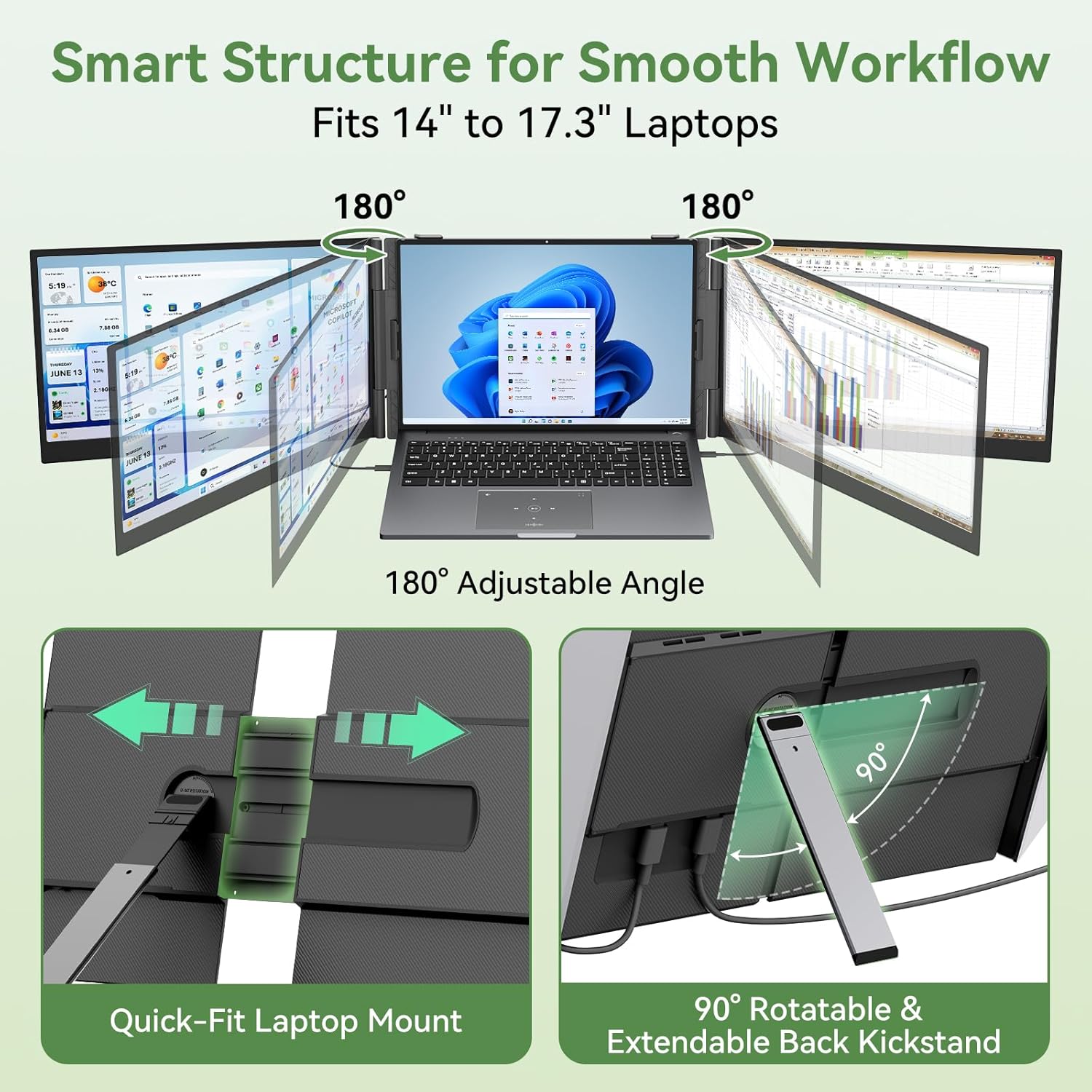 15.6" FHD IPS laptop screen extender monitor with True-to-Life ColorsFeaturing a 19201200 resolution 300 nits brightness and 100% sRGB color accuracy this monitor delivers sharp vibrant visuals with 16.7 million colors. The IPS panel ensures 178 wide viewing angles so every detail stays clear from any position. The pro-level 16:10 aspect ratio adds 11% vertical space cutting down scrolling for spreadsheets sketches or documents.