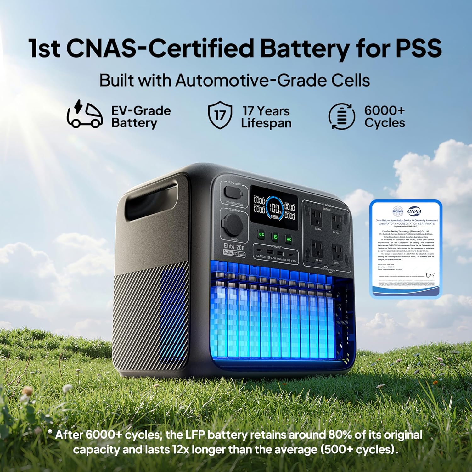 [Longest Lifespan of 17-Year] - Equiped with the industry's first CNAS-certified true automotive-grade LiFePO4 battery and passed 33 rigorous testing standards. Boasting over 6 000 cycles and a 17-year lifespan of everyday use12 times longer durability than the industry average Multi-layer protection enables safe use even in extreme temps.
