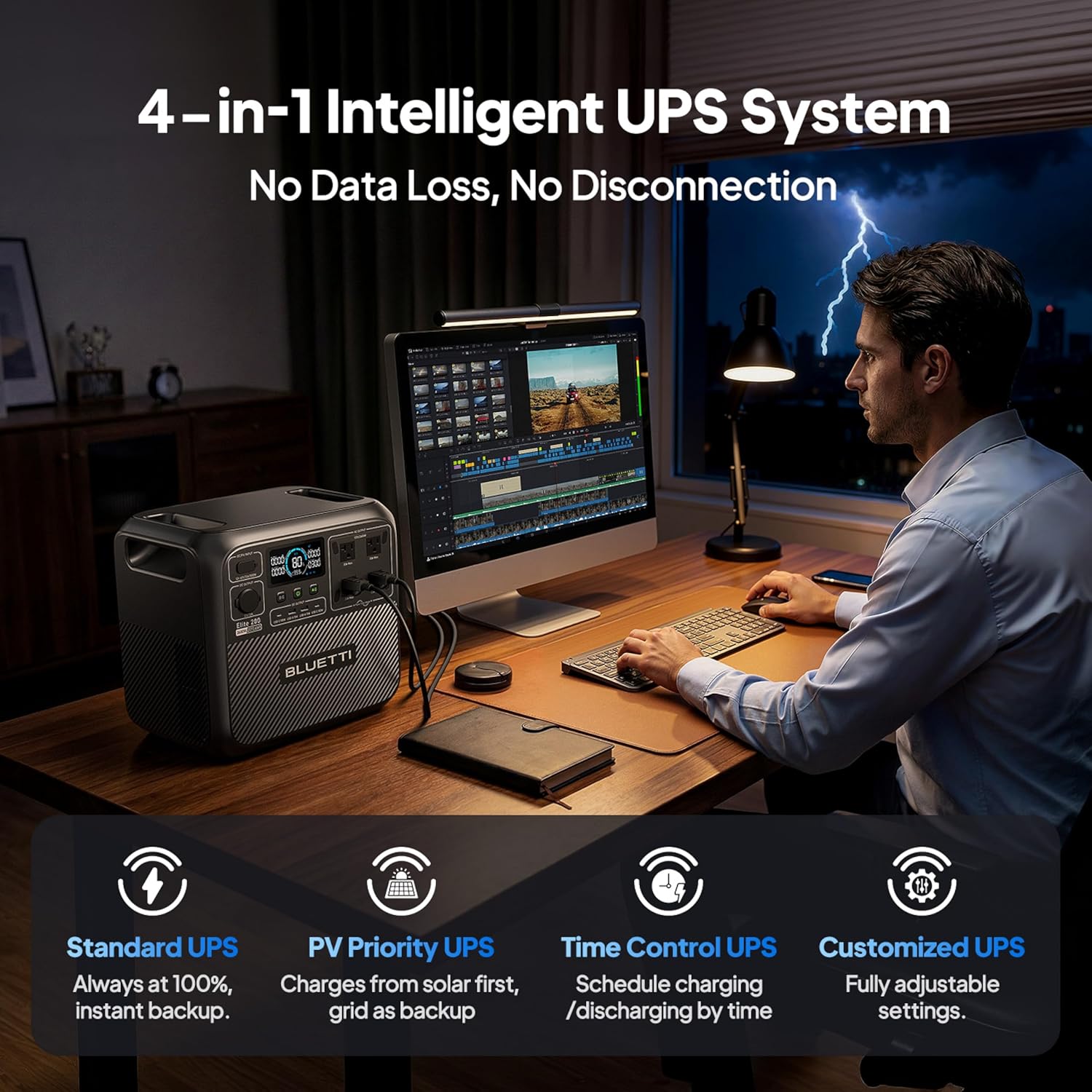 [Adjustable Fast Charging & Ultra-Quiet] - Choose from three smart charging modes (Turbo/Standard/Silent) via app to control speed noise and battery protection Turbo Mode delivers 080% charge in 1 hour (1800W AC). Standard Mode: Up to 1440W AC input full in 1.6 hours (battery-friendly); Silent Mode: 800W AC/solar full in 3 hours 1630dB 45% quieter than typical 30-50dB power stations