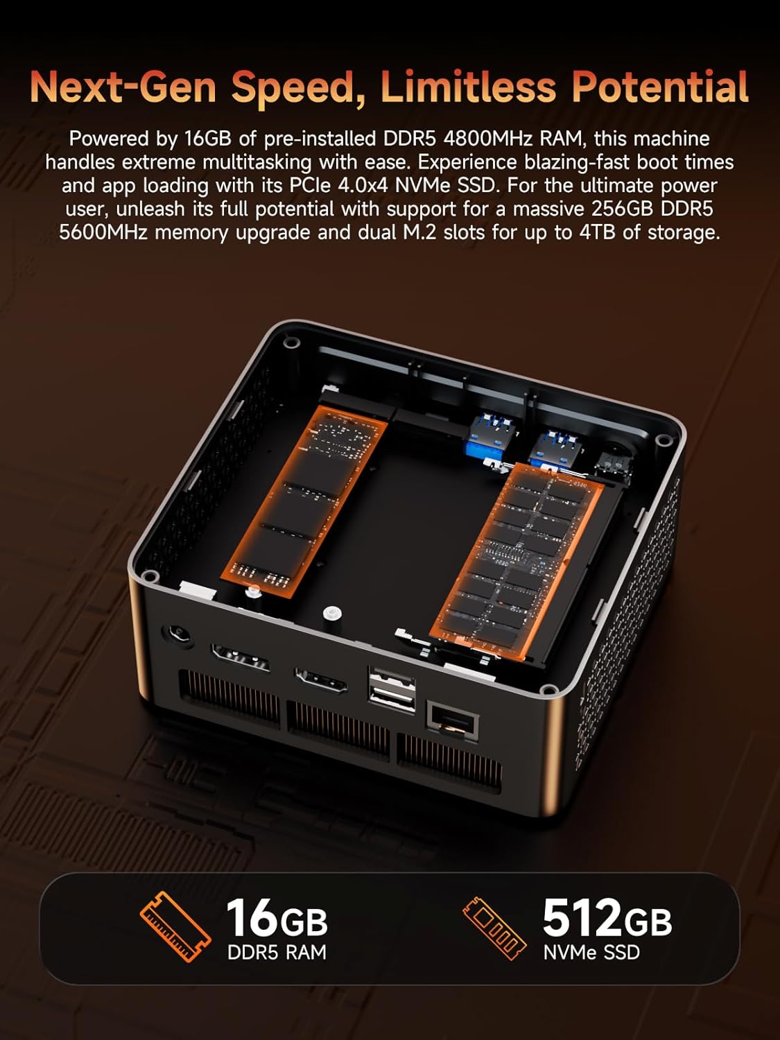 Next-Gen Speed | PCIe 4.0 SSD & DDR5 Memory - Experience ultra-fast responsiveness with a 512GB PCIe 4.0 NVMe SSD and 16GB DDR5 4800MHz RAM. Need more power? Upgrade up to 256GB DDR5 dual-channel memory (128GB 2) for true workstation performance. Boot faster load projects instantly and keep your workflow running at top speed.