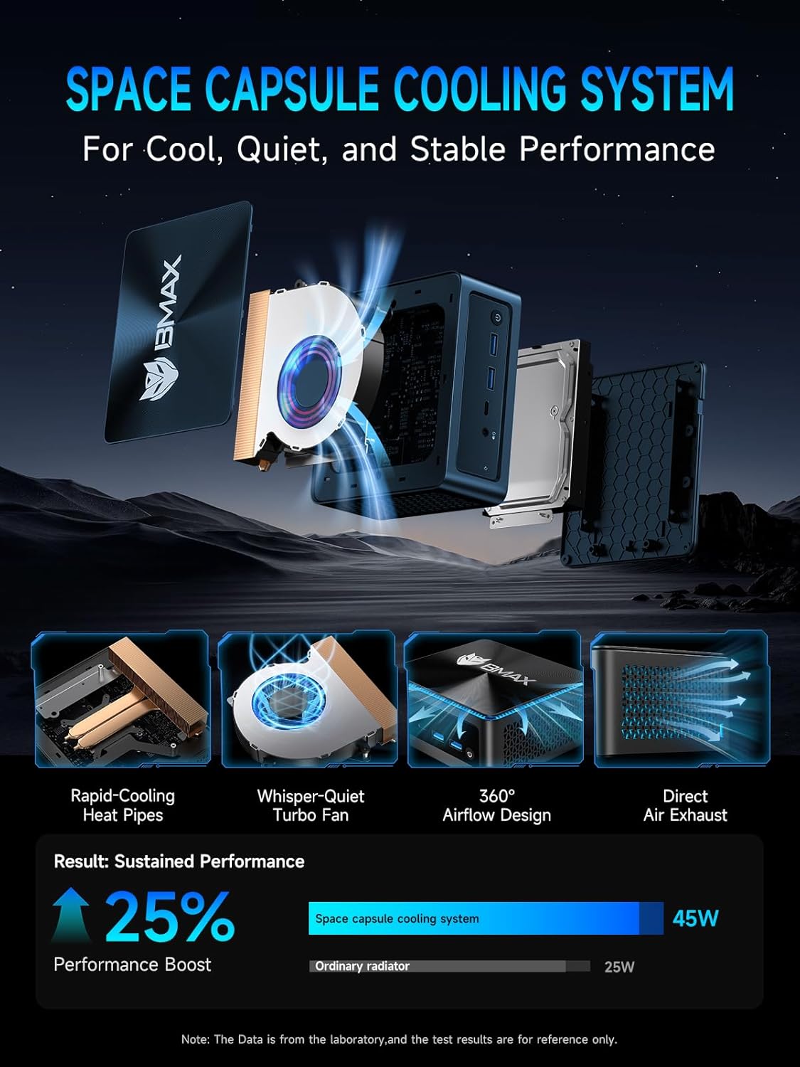 [Dual NVMe Expansion | Massive Future-Proof Storage] Never compromise on speed or space. This Mini PC features two M.2 2280 slots both supporting high-speed NVMe SSDs. This pro-level dual-expansion design allows you to easily add a second drive to expand your storage for massive game libraries video projects or local backups giving you unparalleled flexibility to grow your system as your needs evolve.