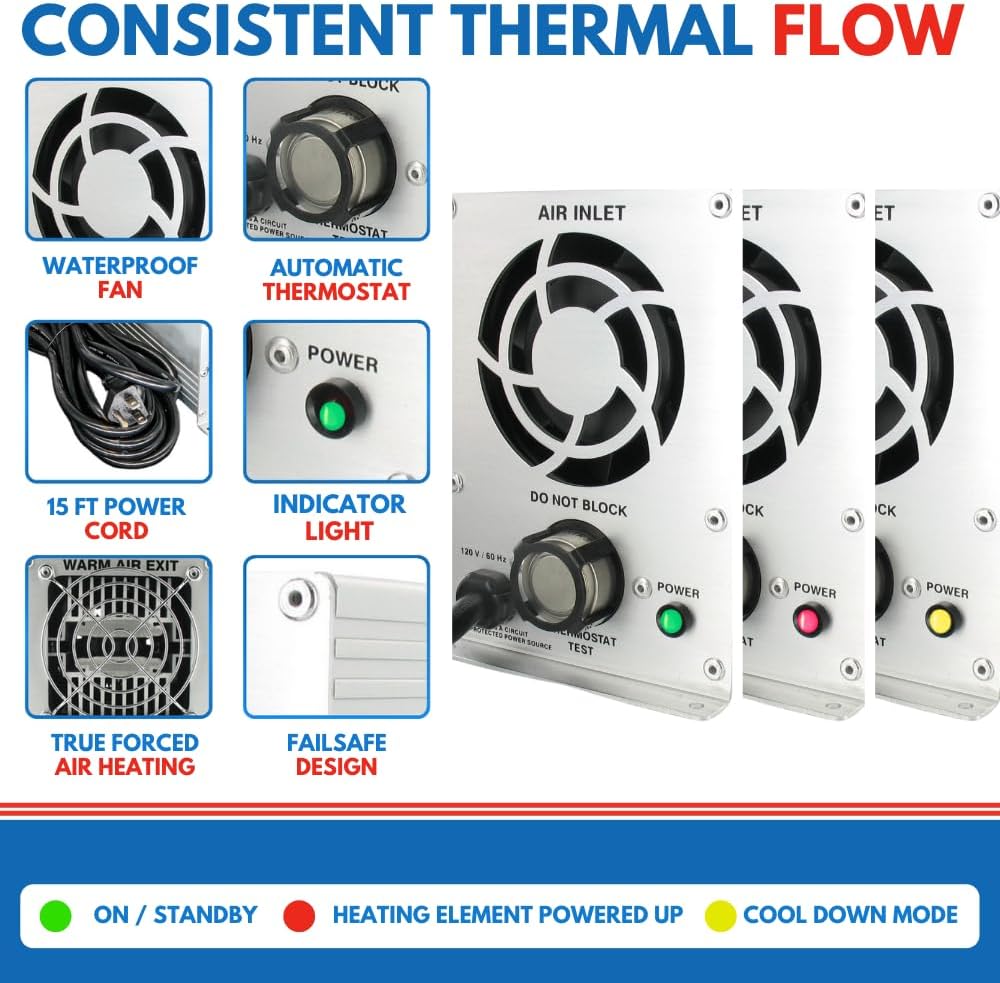 Includes > 15-foot marine rated 110v power cord w/ 3-prong plug. Use as a cabin heater rv bay heater well-house heater boat storage heater bilge heater greenhouse heater lithium warmer & more!