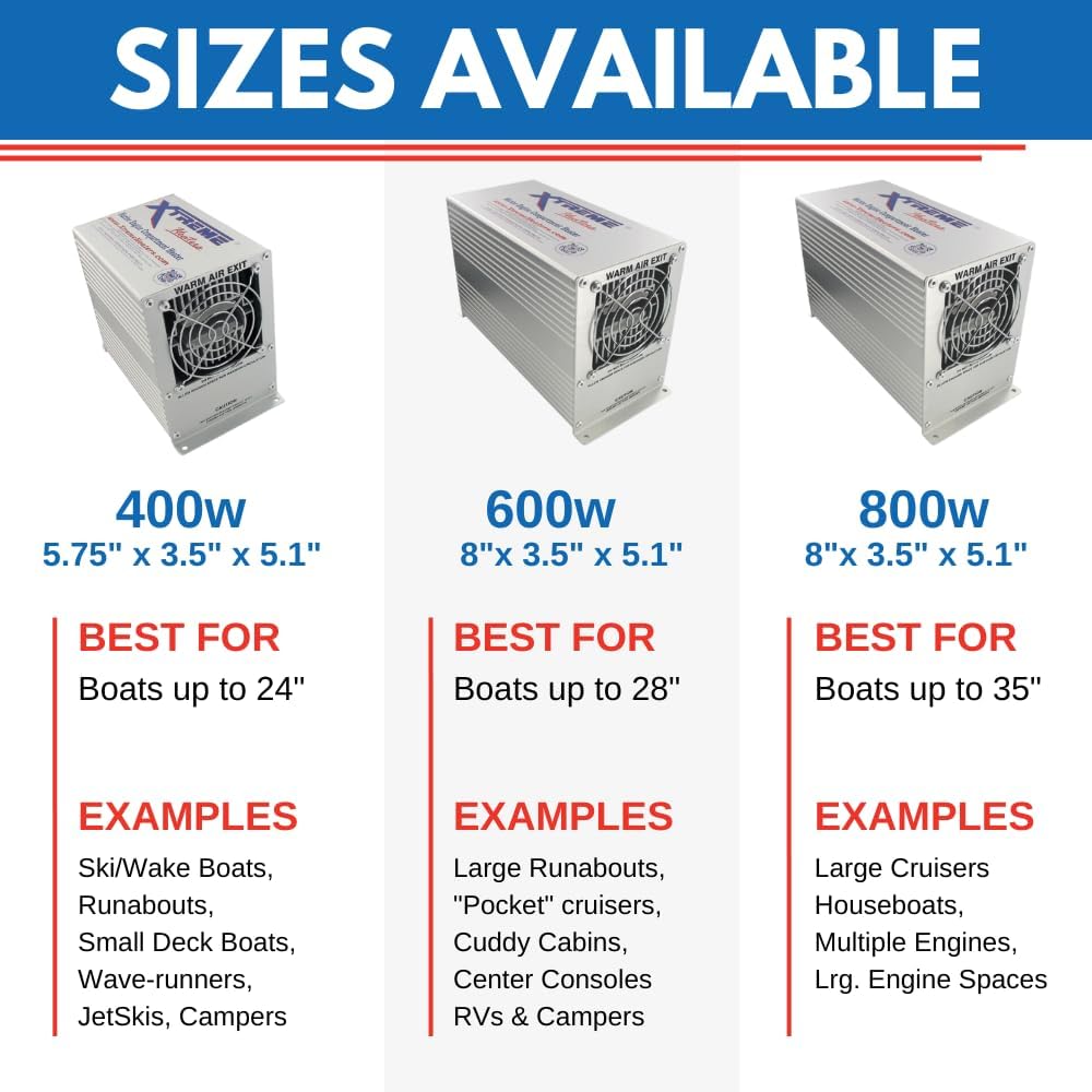 Durable > Get a lifetime of use from the anodized case sealed electronics module & our exclusive 58 CFM waterproof fan. Our boat bilge heater can be mounted any direction even upside down.