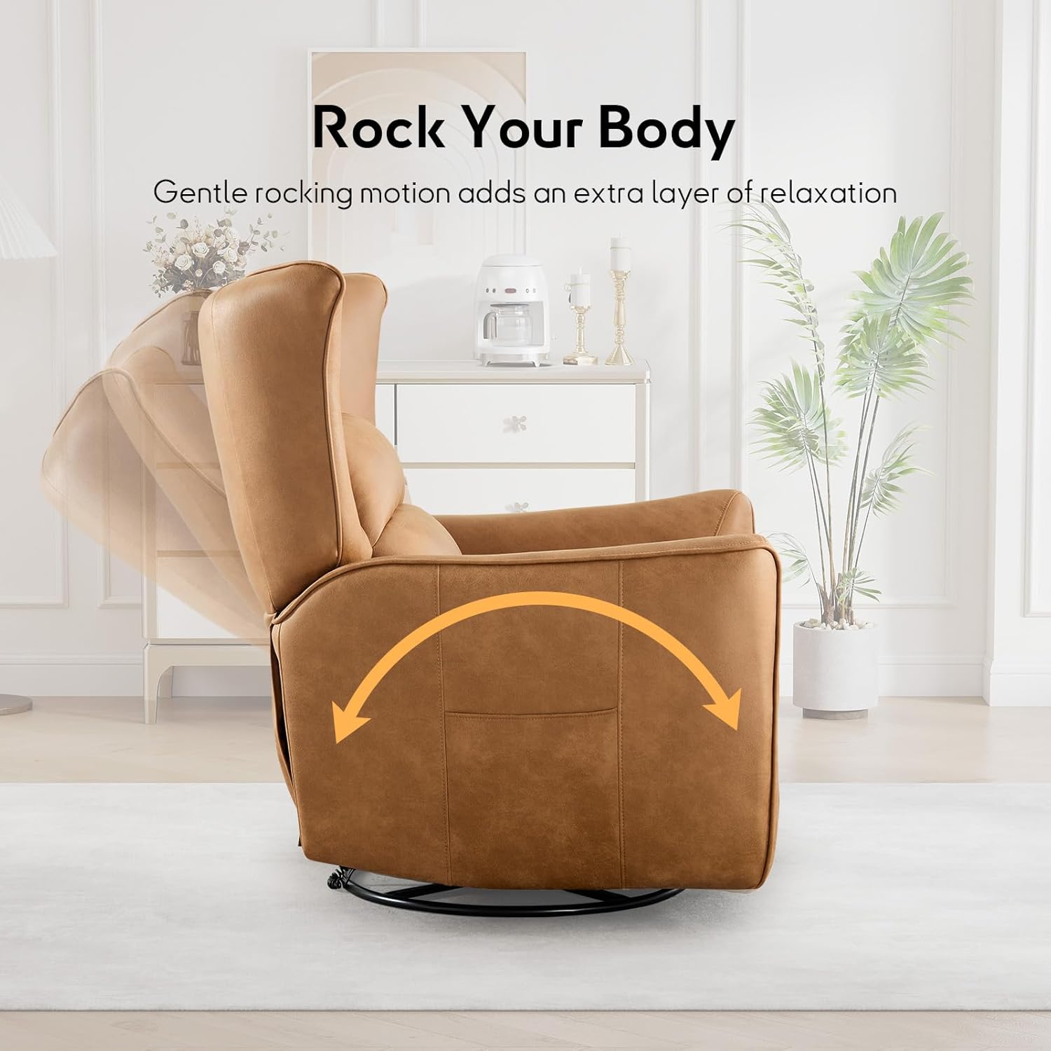 Sturdy ConstructionThis rotating rocking chair recliner features a metal frame and base as its core structure, with solid and stable materials ensuring smooth and quiet rotation and swinging. The base adopts a reinforced design, which can stably support a weight of up to 350LBS, providing safe and reliable support throughout its long-term companionship.