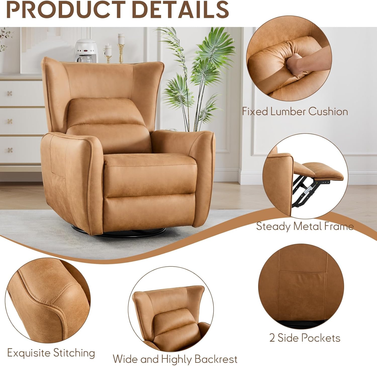 Easy to AssembleThis swivel rocking chair recliner comes with clear installation instructions and is easy and quick to assemble, typically taking only 10 to 15 minutes to complete. The packaging adopts a three box packaging design, which can be easily transported by a single person, making it worry free from receiving to enjoying a comfortable experience.