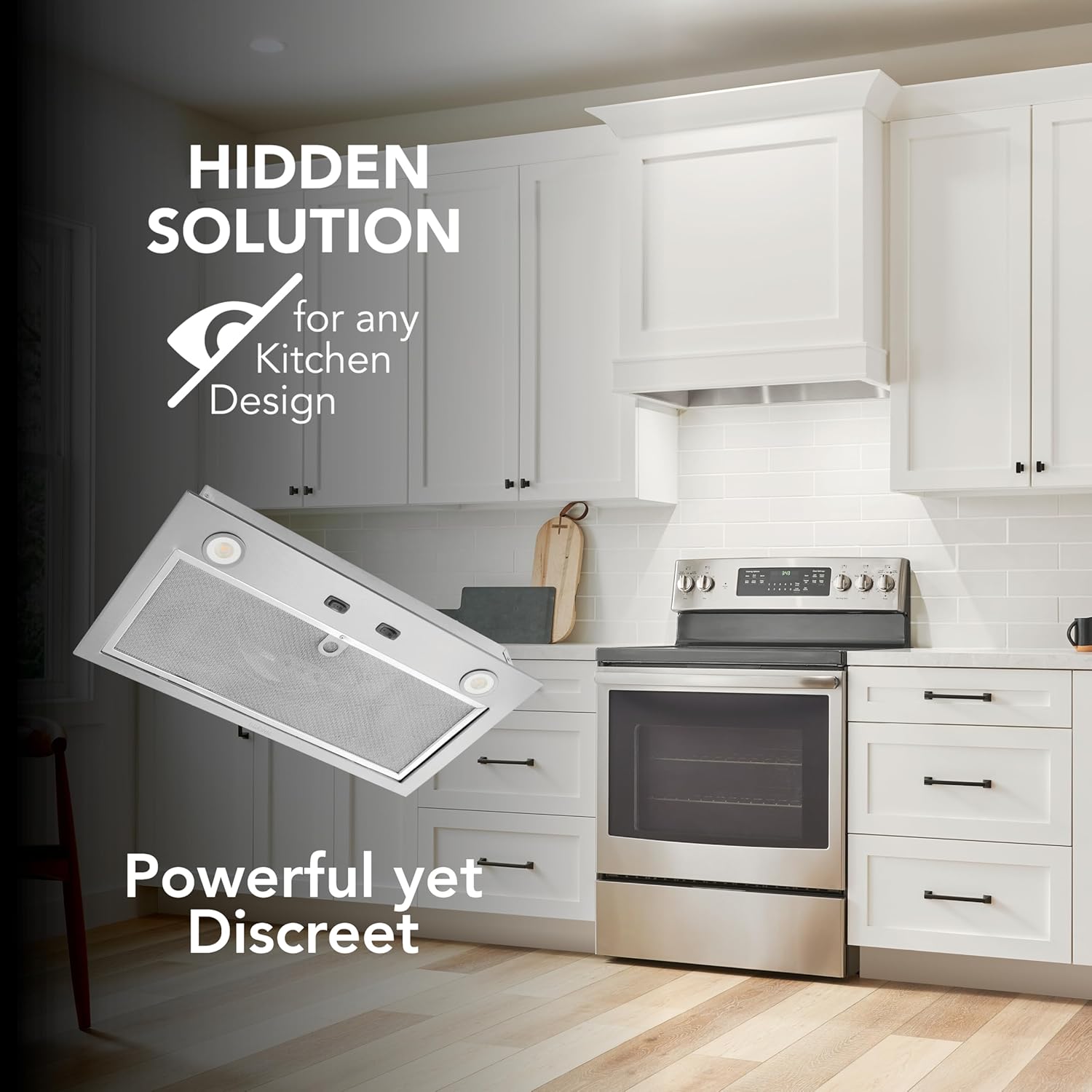 BUILT-IN POWER PACK INSERT: This insert provides efficient ventilation for your kitchen quickly removing smoke & odors from your space with a two-speed blower at 300 Max Blower CFM.